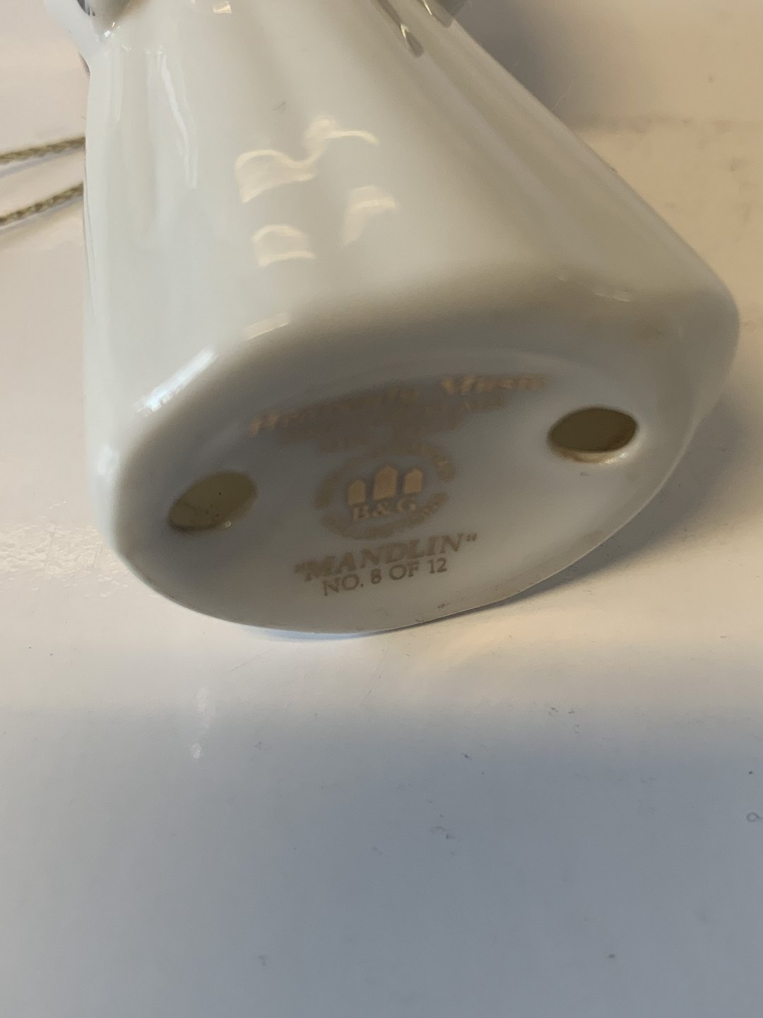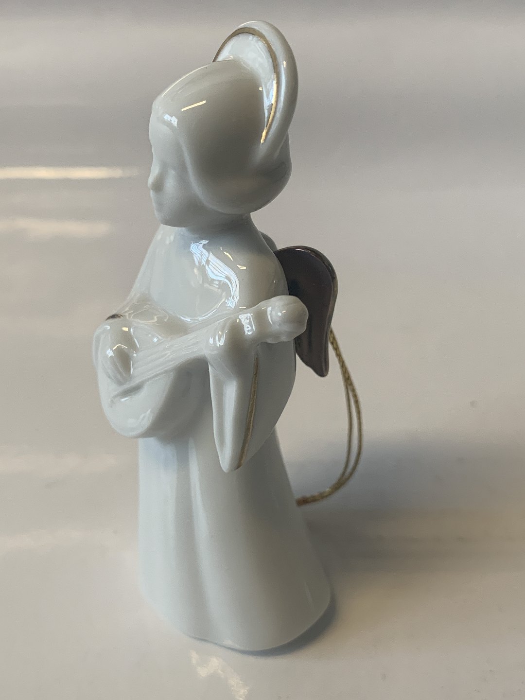 Bing & Grøndahl. Heavenly Music. Mandoline No. 8 af 12. Hvid porcelæns engel med guld staffering og guldvinger (24 karat). Serien hedder " Engel med Instrumenter" og består af 12 stk.