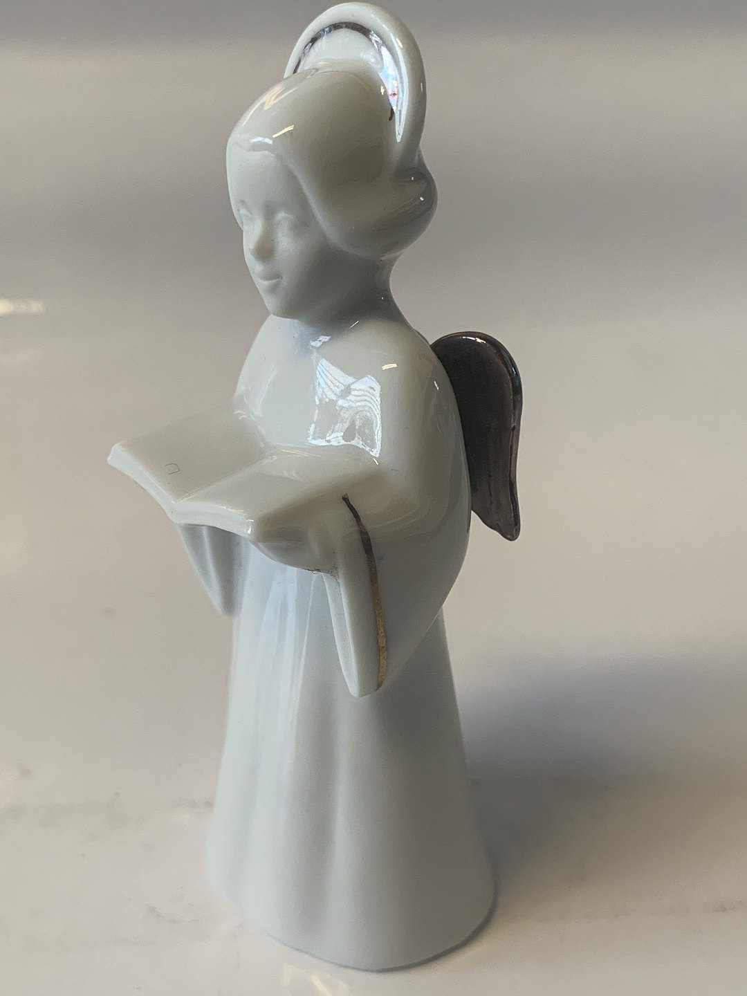 Bing & Grondahl. Heavenly Music. Songbook No. 3 of 12. White porcelain angel with gold decoration and gold wings (24 carat). The series is called "Angel with Instruments" and consists of 12 pieces.