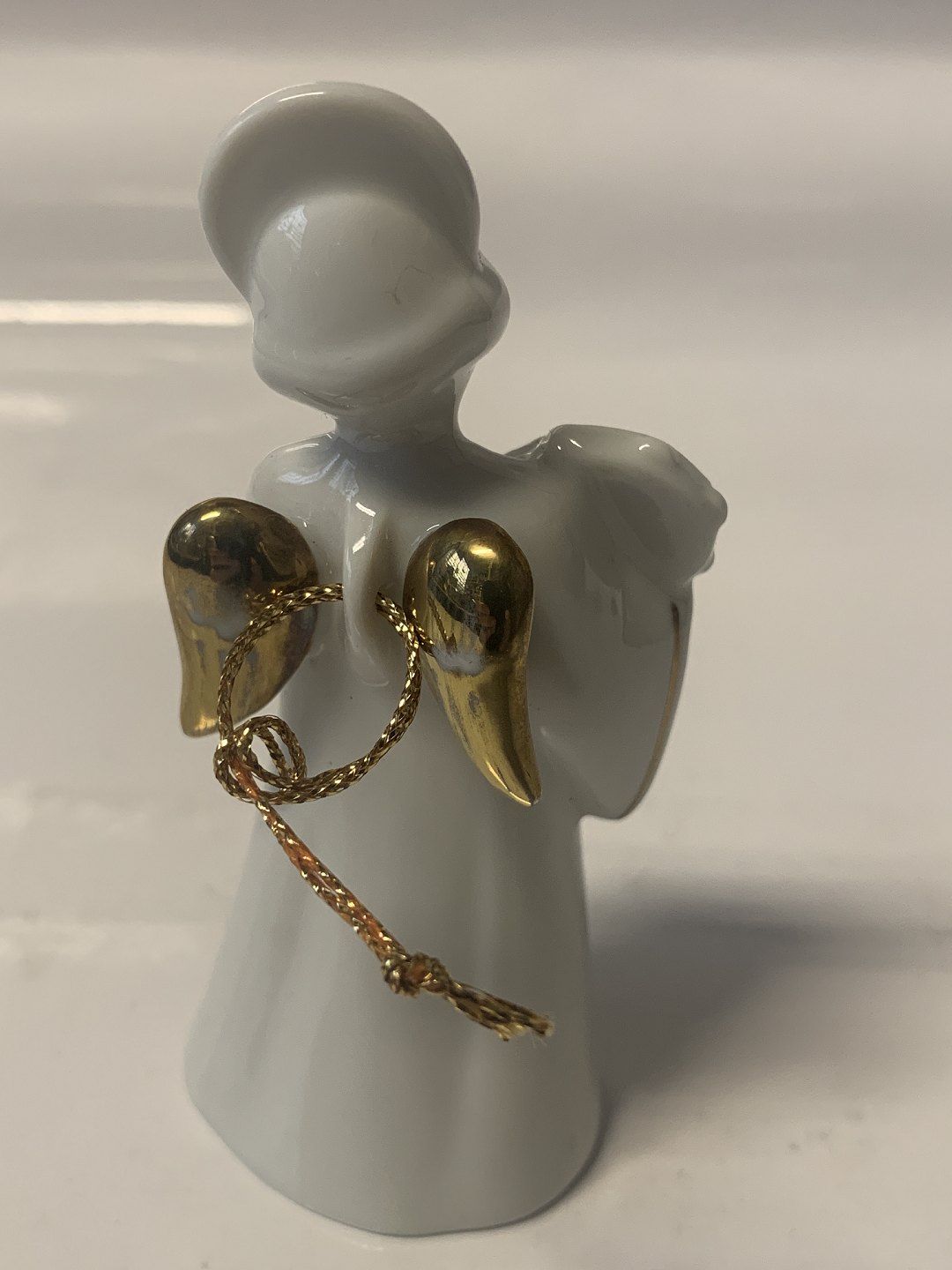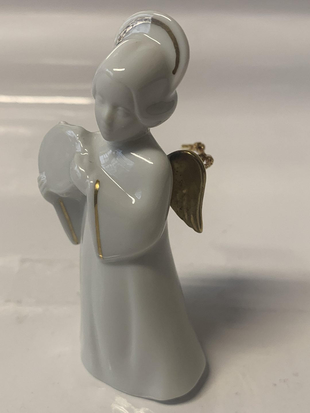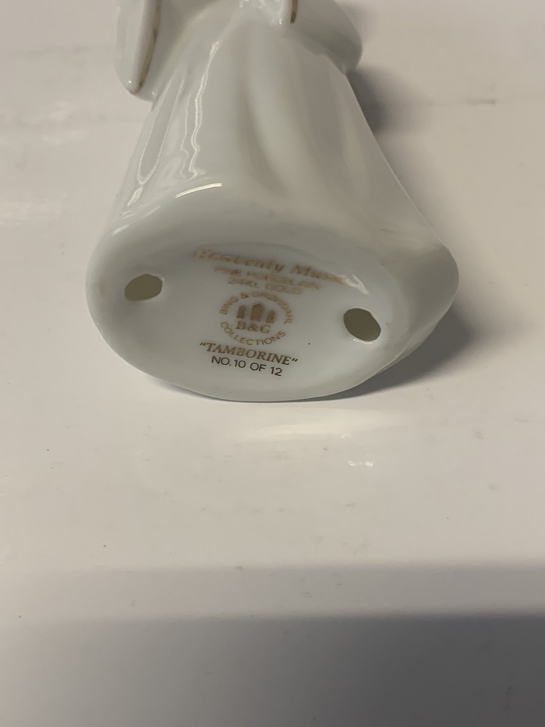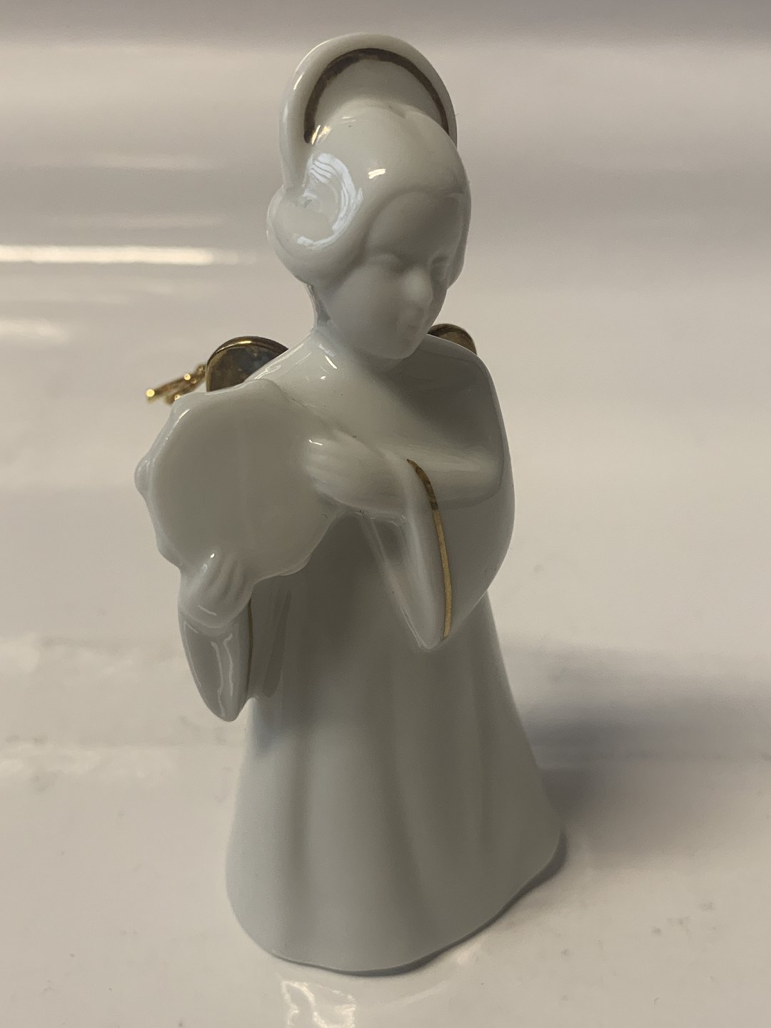 Bing & Grondahl. Heavenly Music. Tambourine No. 10 of 12. White porcelain angel with gold decoration and gold wings (24 carat). The series is called "Angel with Instruments" and consists of 12 pieces.