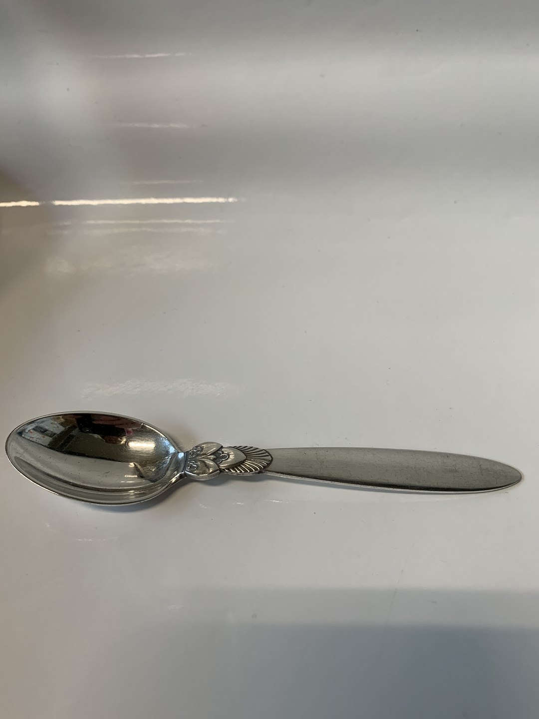 Georg Jensen Cactus Teaspoon No 033. Designed by Gundorph Albertus in 1930. From Royal Court Supplier Georg Jensen Sølvsmedie, Denmark. Length 12.4 cm. Beautiful and well-maintained condition.