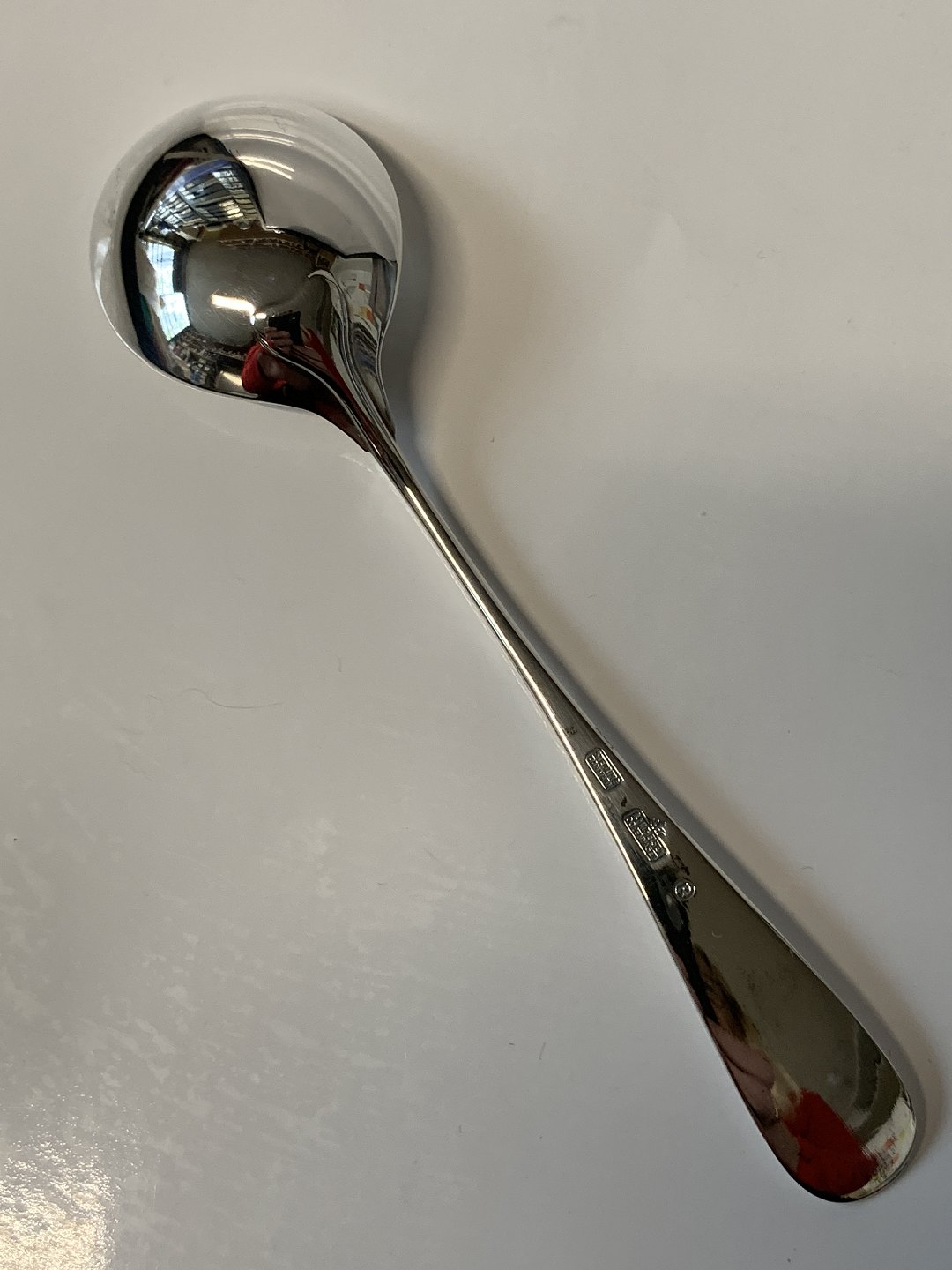 Jam spoon, Ida, A. Michelsen, Sterling silver. Length 14.3 cm. Designed by Ole Hagen. Stamped Anton Michelsen Copenhagen, Sterling Denmark. Well-maintained cutlery, polished and packed in bag