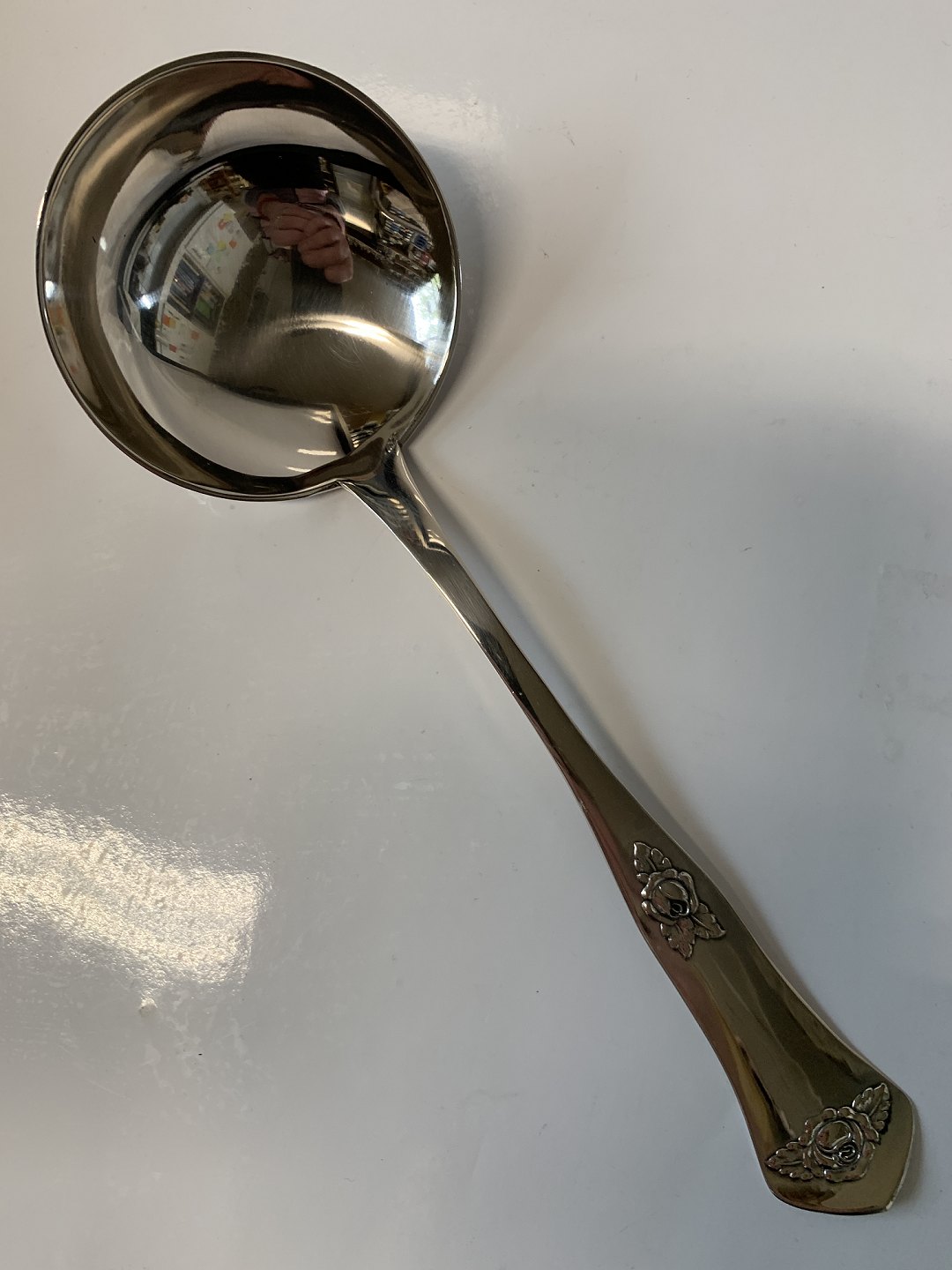 Potato spoon with round handle, Rosen Danish Silver Cutlery Horsens silver Length 21.2 cm. Well maintained condition. Polished and packed in bag.