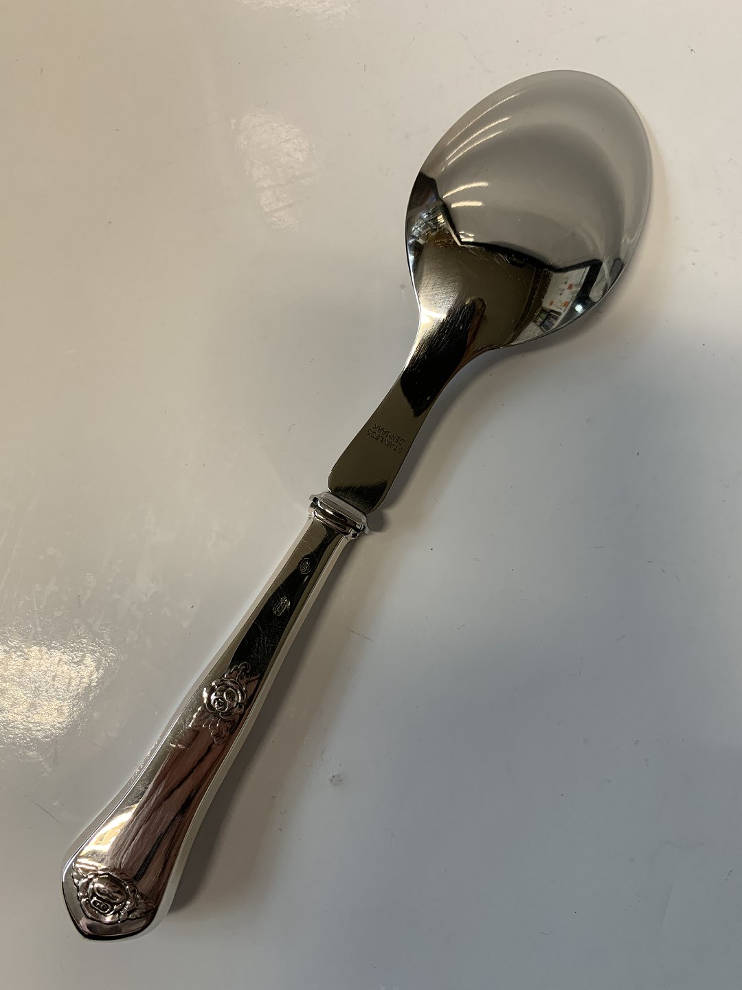 Serving spoon with steel blade, Rosen Danish Silver Cutlery Horsens silver Length 18.1 cm. Well maintained condition. Polished and packed in bag.