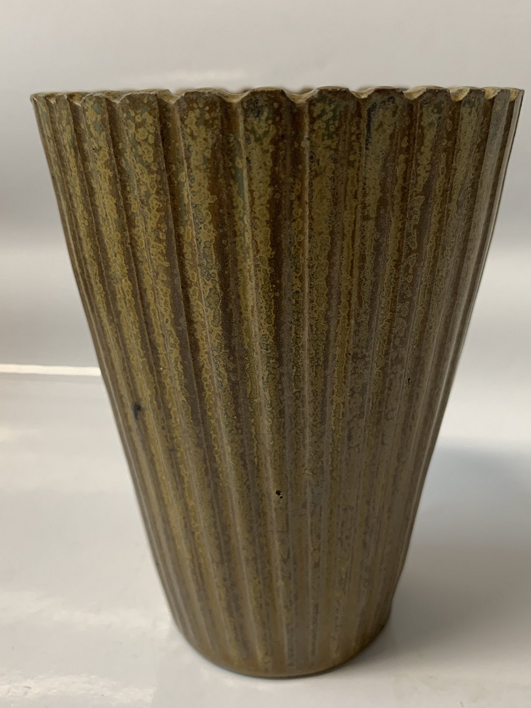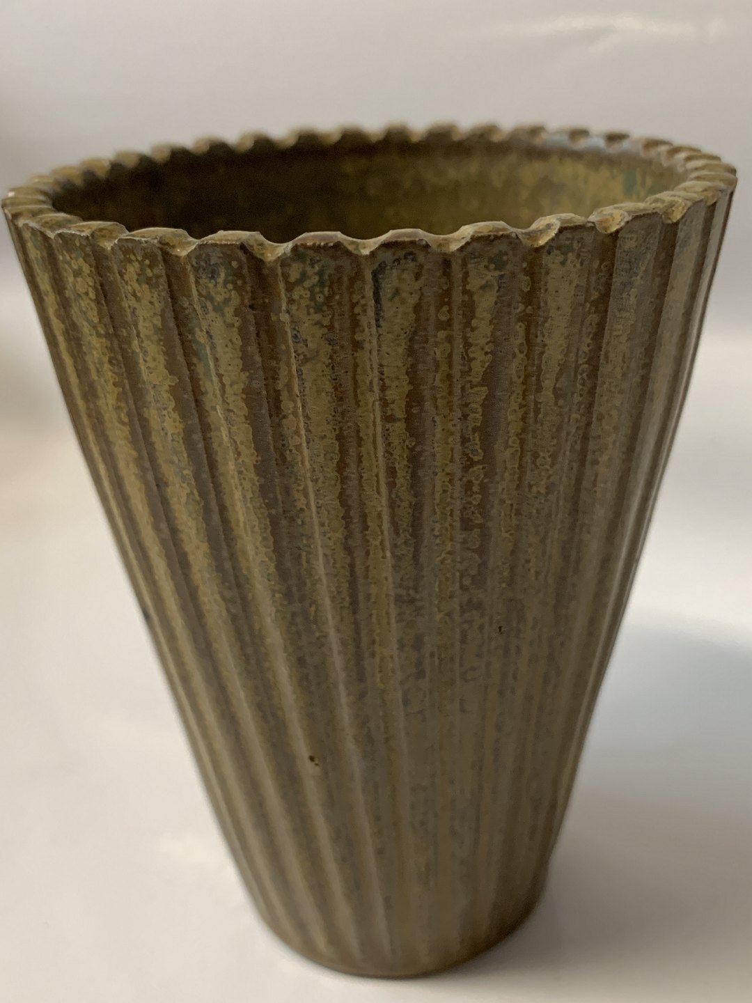 Arne Bang ceramics, vase with grooves and a beautiful glaze.