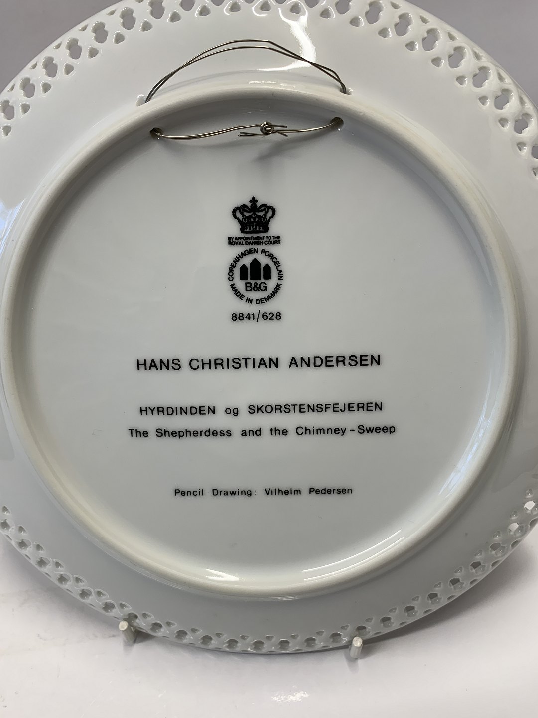 Hans Christian Andersen platte Hyrdinden og Skorstensfejeren fra Bing og Grøndahl. Dekorationsnummer 8841 / 628. Diameter 21 cm. 1.Sortering. Perfekt stand.