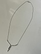 Necklace with pendant, with inlaid diamonds, in 14 carat white gold.