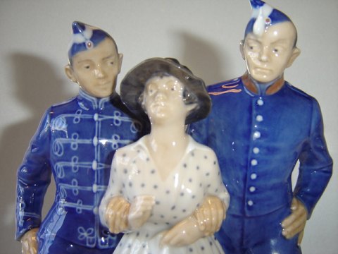 Sjælden Kongelig Figur, Pige og to soldater Før 1923 Dekorationsnummer 1891. 1. sortering. Højde 21 cm. Perfekt stand.