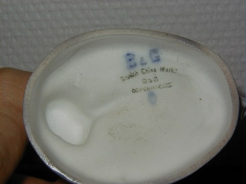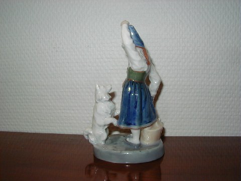 Very Rare Bing & Grøndahl Figure: Man with Dog. This B&G mark was only used between 1895 and 1898. Factory first, height 14.5 cm. Has a tiny repair (very well done). Otherwise in excellent condition. A very rare piece.