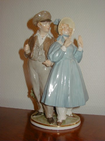 Kongelig Overglasur Figur af Hans og Trine med dek. nr. 1783, 1. sortering, højde 24,5 cm.