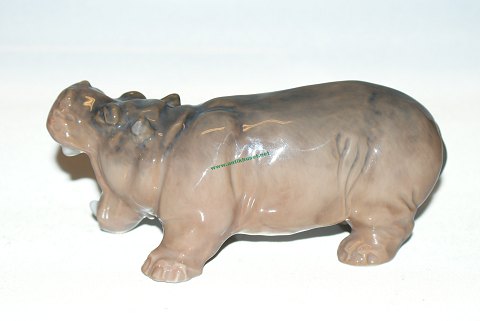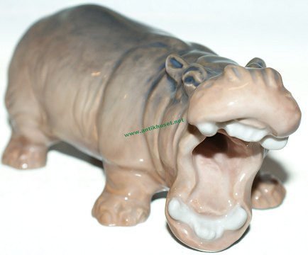 Meget sjælden Kongelig Figur, Flodhest der brøller Design: Knud Kyhn 1. Sortering Længde 16,5 cm. Flot og Velholdt stand.