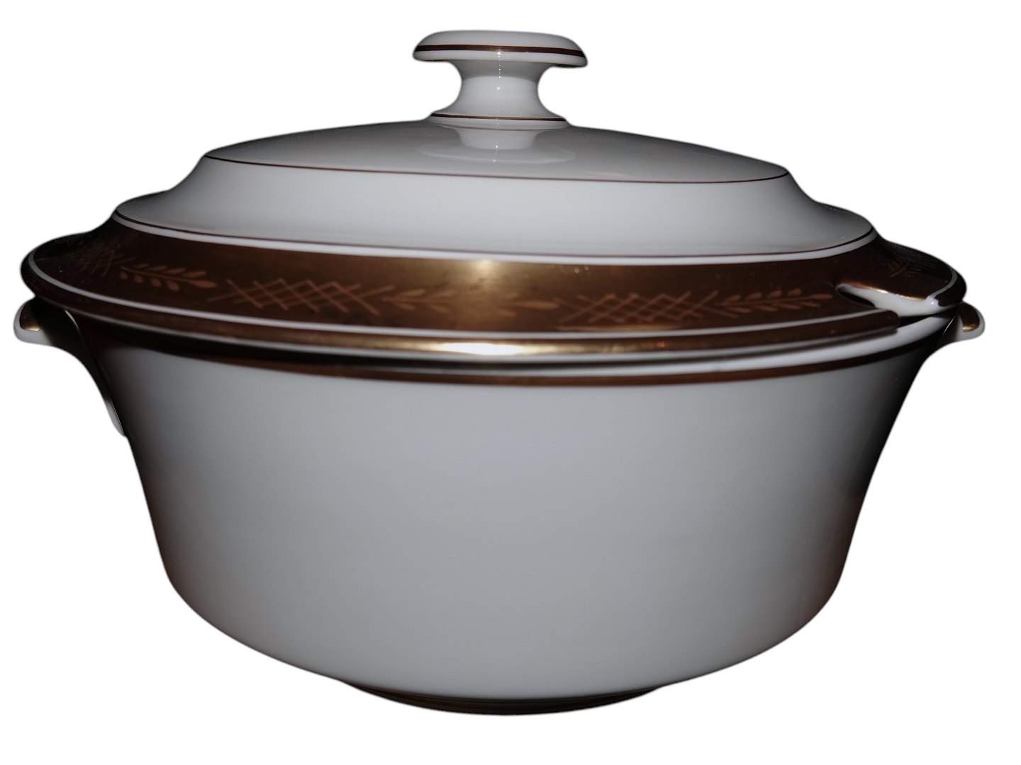 Royal Copenhagen Decoration 607 - white with gold edge on the same shape as Dagmar, soup tureen.