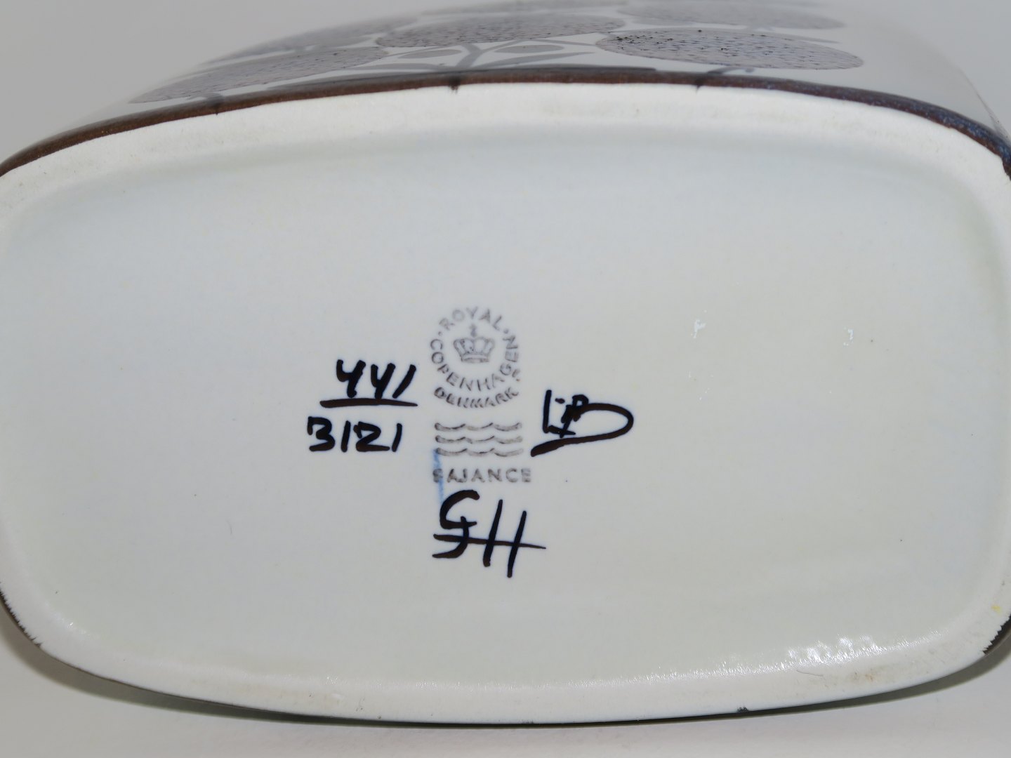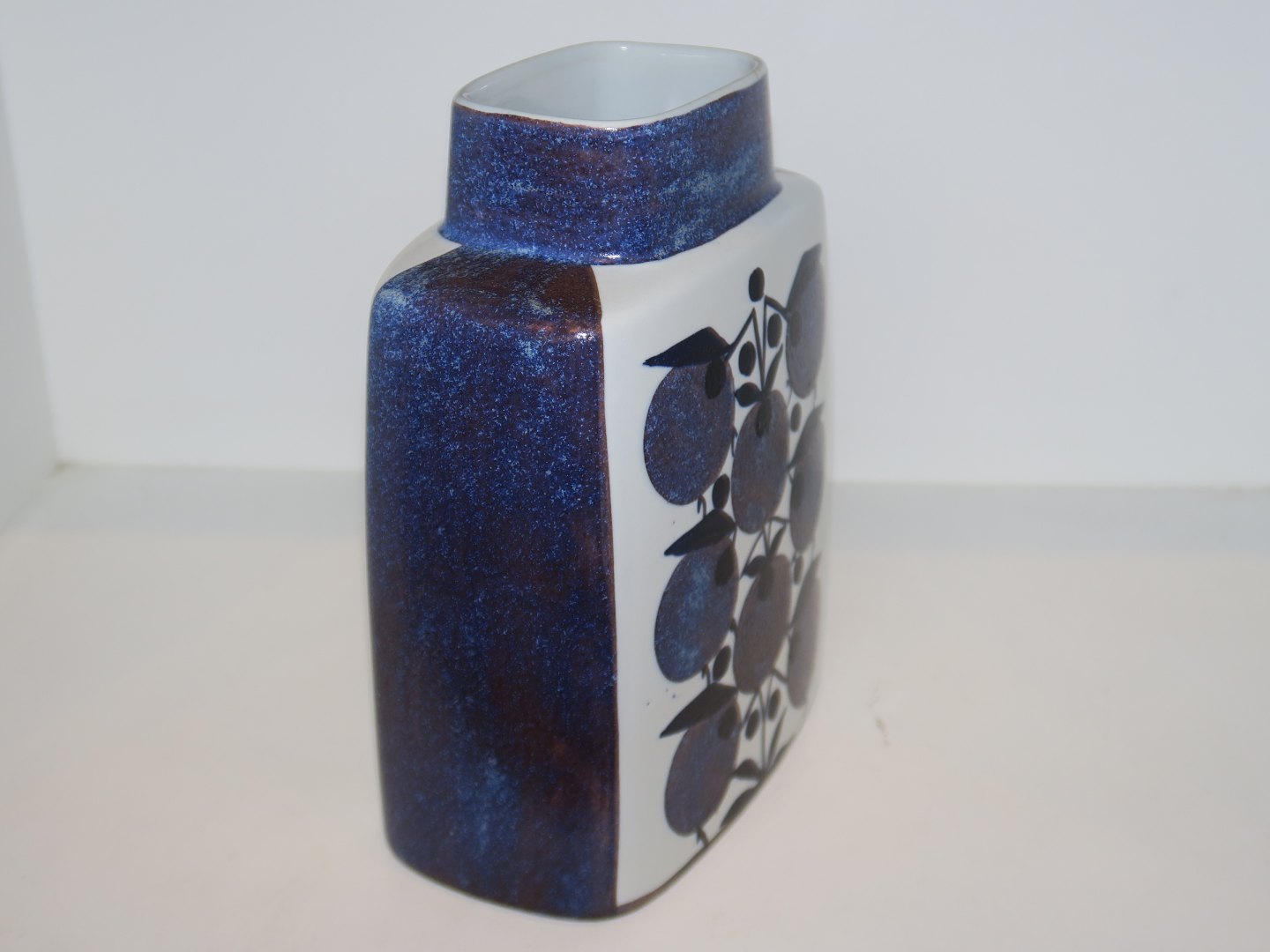 Royal Copenhagen Baca blå vase. Designet af Grethe Helland Hansen. Dekorationsnummer 441/3121. 1. sortering. Højde 19,4 cm., bredde 14,0 cm. Perfekt stand uden fejl.