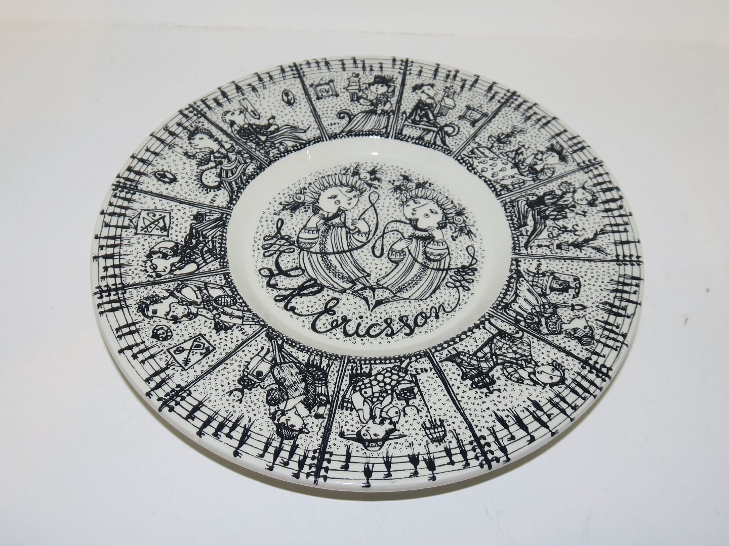 Bjørn Wiinblad keramik udført hos Nymølle. Sort rundt fad fra LM Ericsson. Diameter 21,8 cm. Perfekt stand.