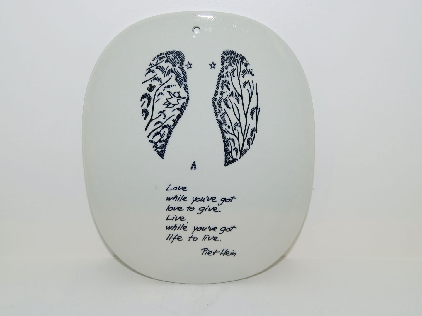 Piet Hein platte med gruk på engelsk - Love while you've love