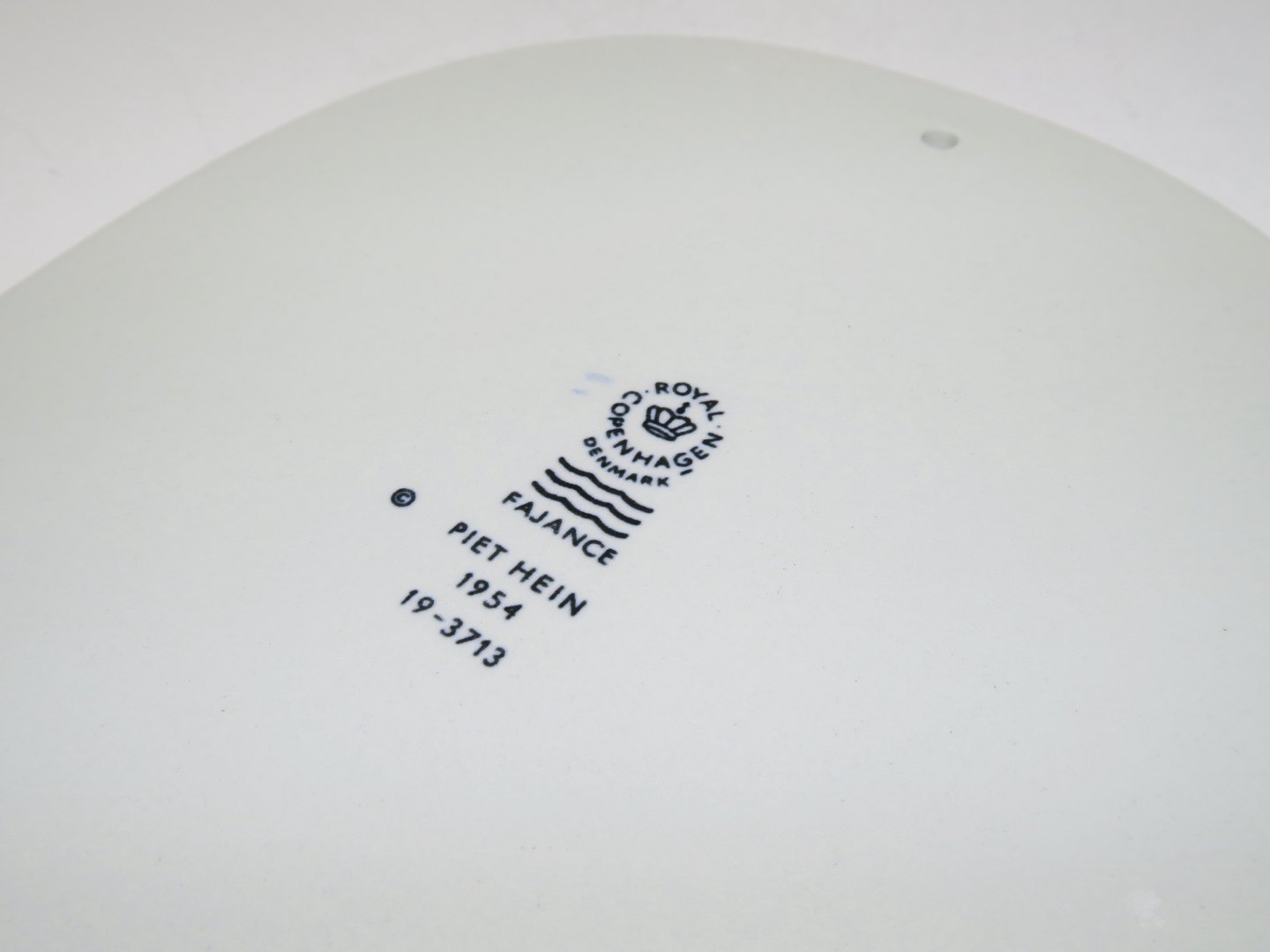 Royal Copenhagen Piet Hein platte med gruk på engelsk.