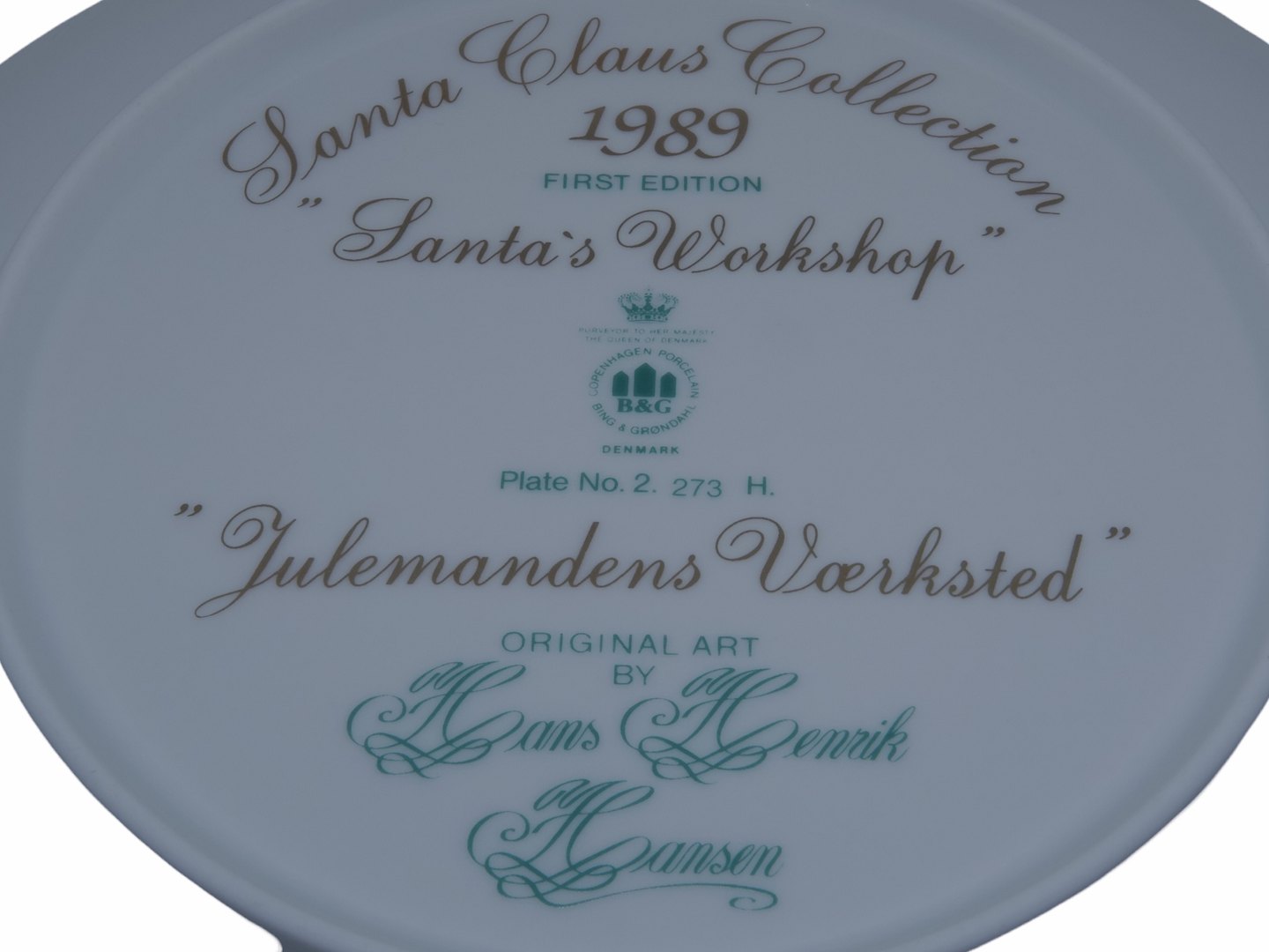 Bing & Grøndahl Santa Claus Collection platte, Julemandens Værksted fra 1989. 1. sortering. Diameter 20,2 cm. Perfekt stand uden fejl.