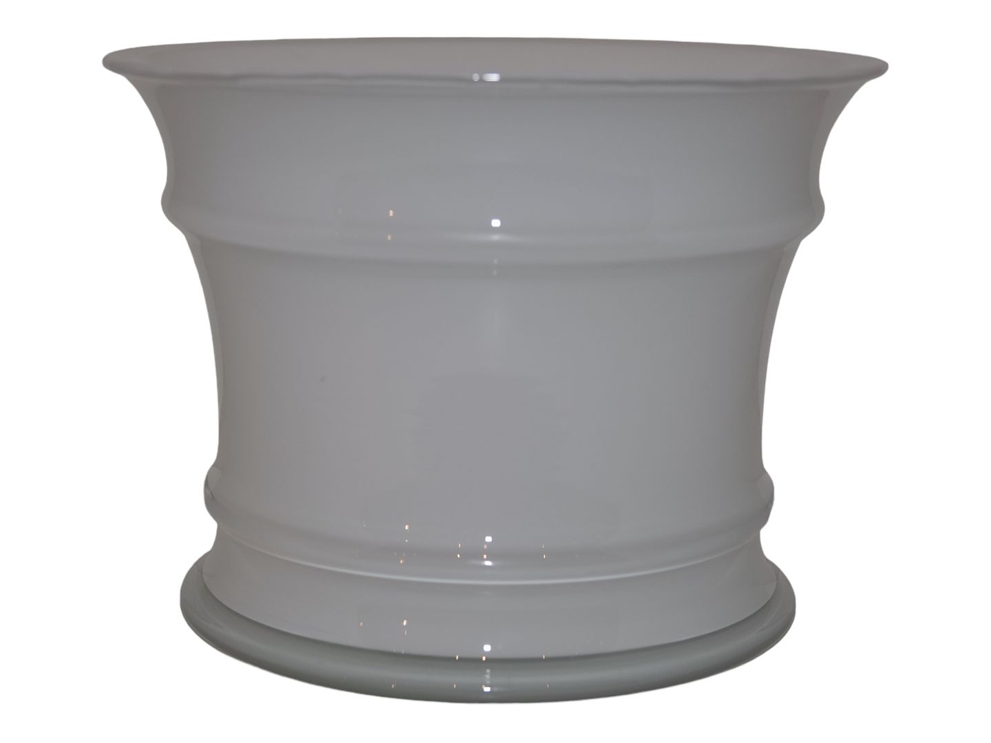 Holmegaard, MB urtepotteskjuler - mellemstor model. Hvidt opalglas. Designet af Michael Bang i 1981. Diameter 13,8 cm., højde 10,6 cm. Perfekt stand.