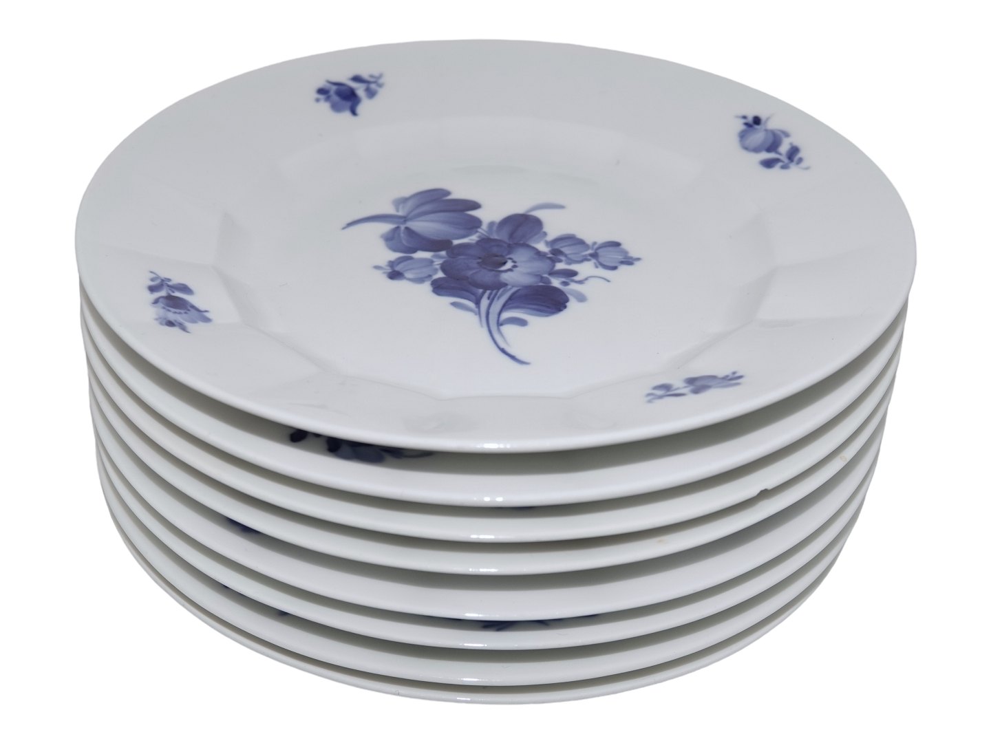 Royal Copenhagen Blå Blomst Kantet, stor salat/sildetallerken Dekorationsnummer 10/8514. 2. sortering. Diameter 19,5 cm. Perfekt stand uden fejl.