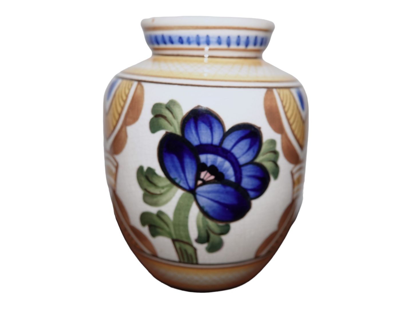Der er svage misfarvninger i glasuren samt et lille nøk på topkanten, kan ses på foto 2, ellers perfekt stand.