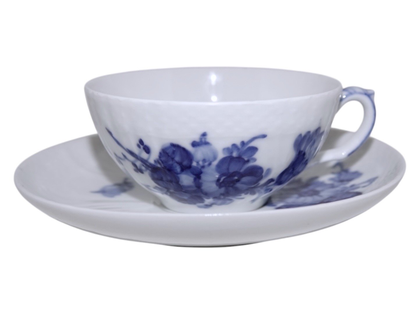 Royal Copenhagen Blå Blomst Svejfet, tekop med indvendig bemaling samt tilhørende underkop.