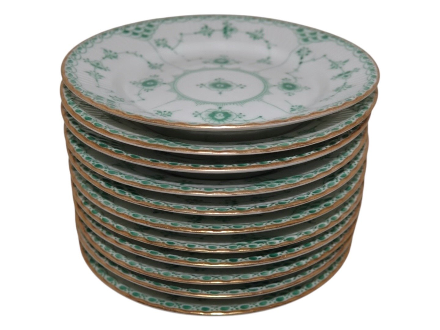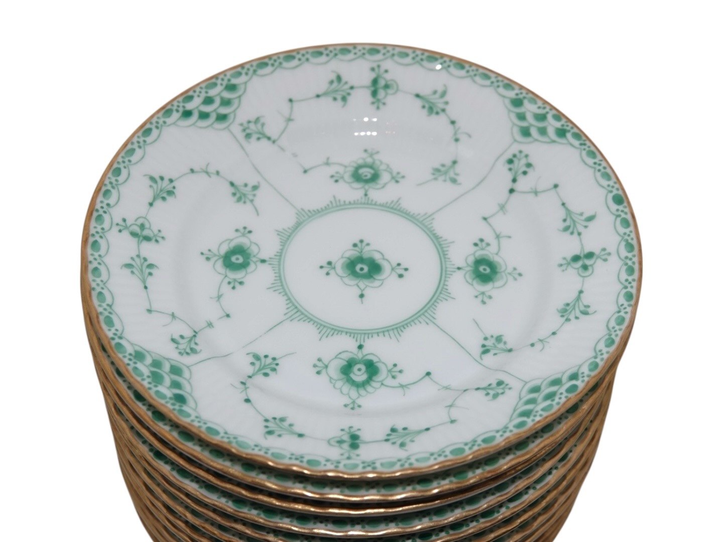 Royal Copenhagen Grøn Musselmalet Halvblonde med guldkant, kagetallerken.