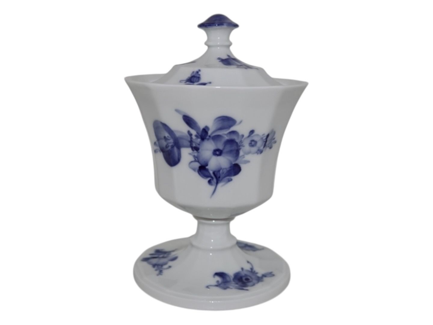 Royal Copenhagen Blue Flower Angular, rare lidded marmalade jar on stand.