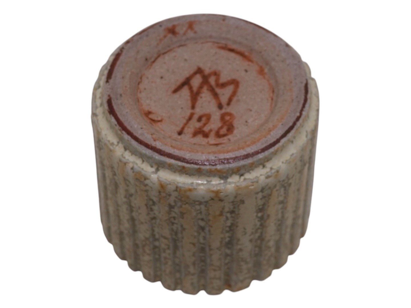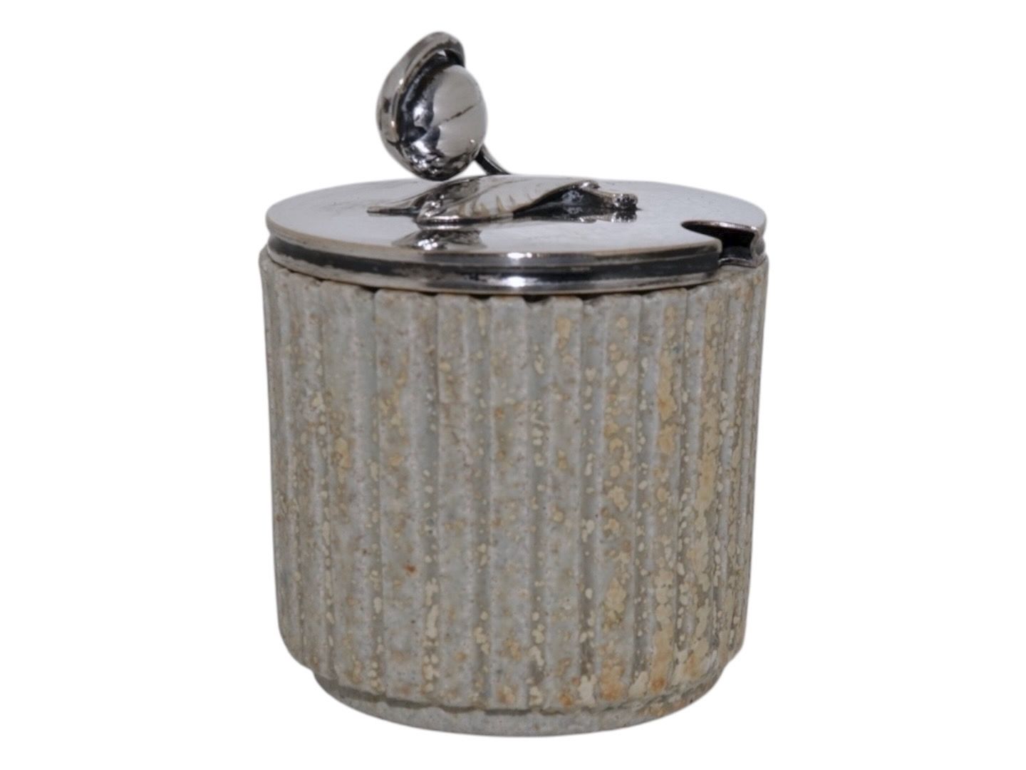 Arne Bang art pottery, marmelade jar with silverplate lid.