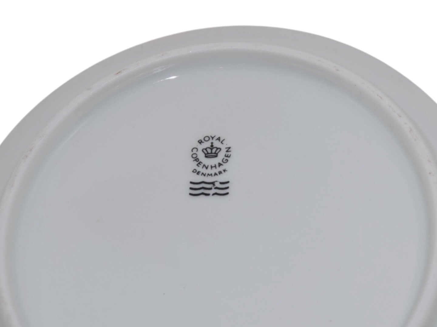 Royal Copenhagen julestel, lille asiet med julenisse, risengrød og kat.