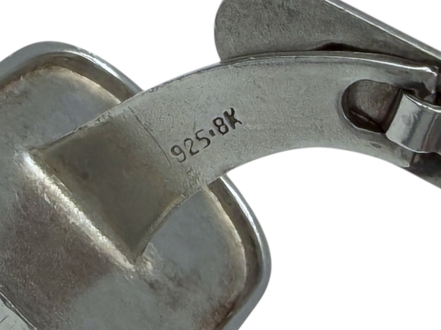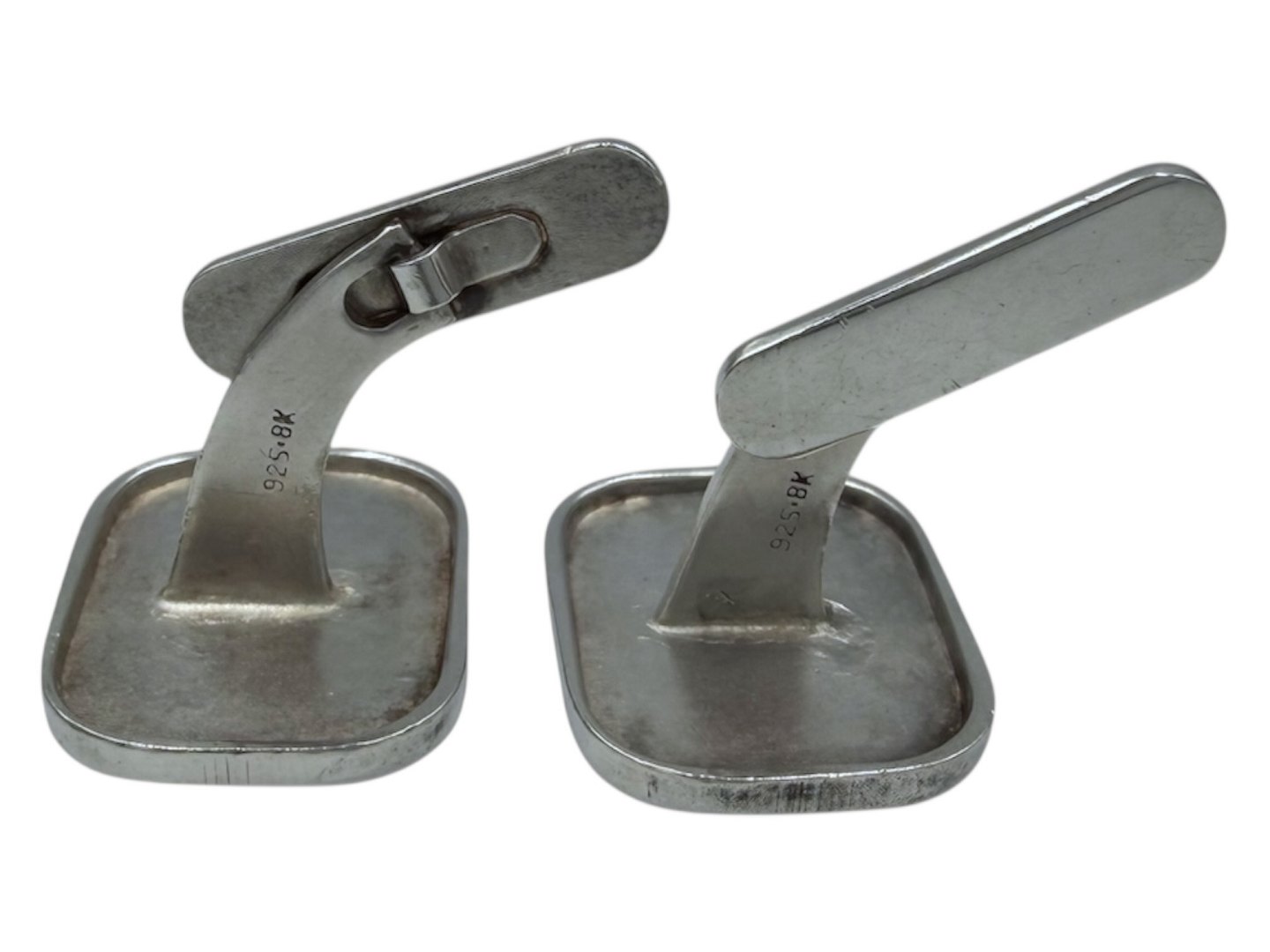 Bonell, par manchetknapper i sterlingsølv fra ca. 1982-1990. Stemplet "925S BK". Bonell var sølvsmed i Valby fra 1982. Selve manchetten måler 2,0 x 1,5 cm. Fin og velholdt stand.