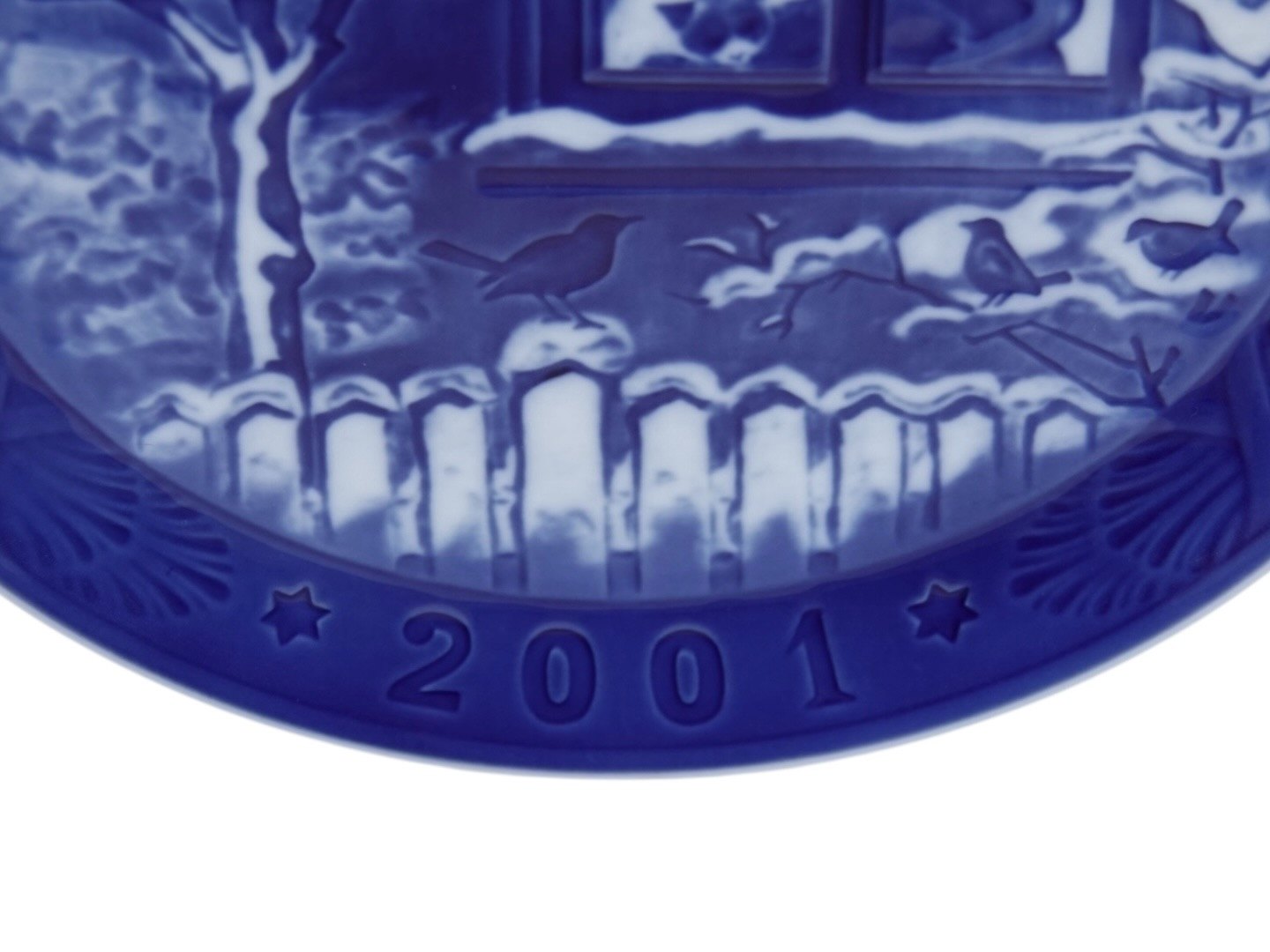 Royal Copenhagen. Juleplatte fra 2001 - Foderbræt til fuglene. Diameter 18 cm. 1. sortering. Perfekt stand.