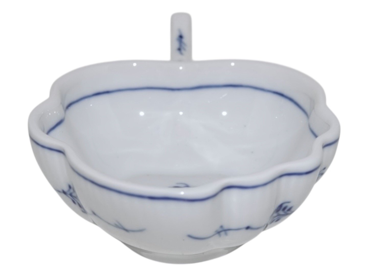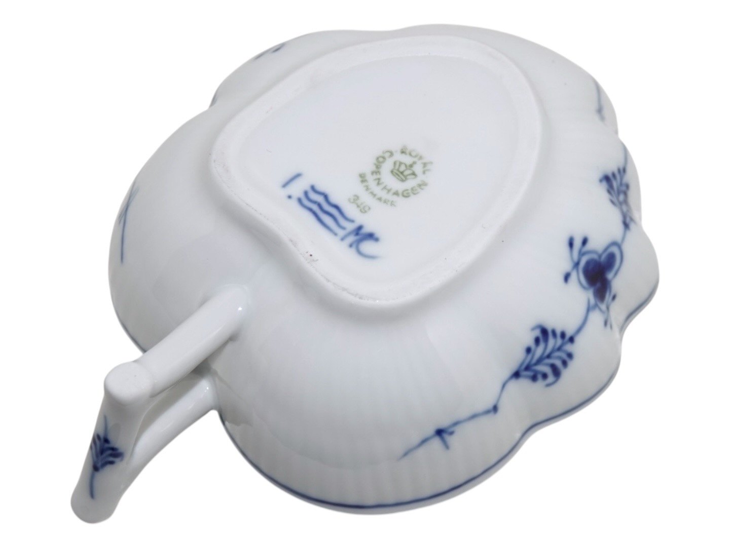 Royal Copenhagen Musselmalet Riflet, lille skål med hank. Dekorationsnummer 349. 2. sortering. Længde 13,7 cm. med hank. Perfekt stand uden fejl.