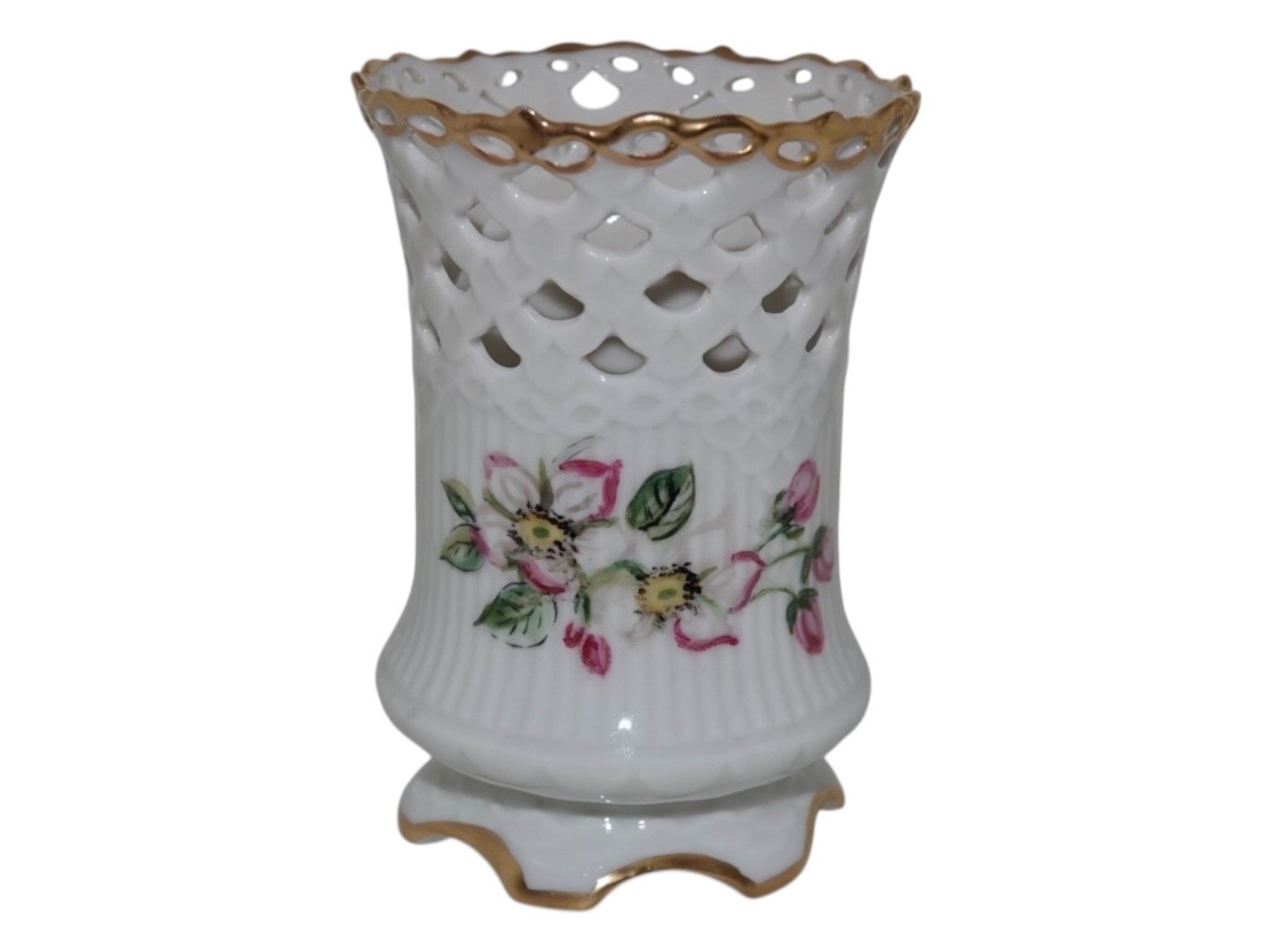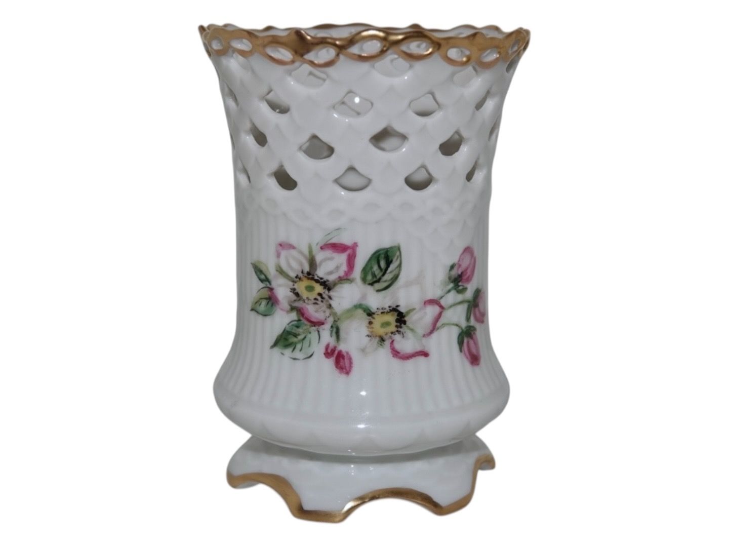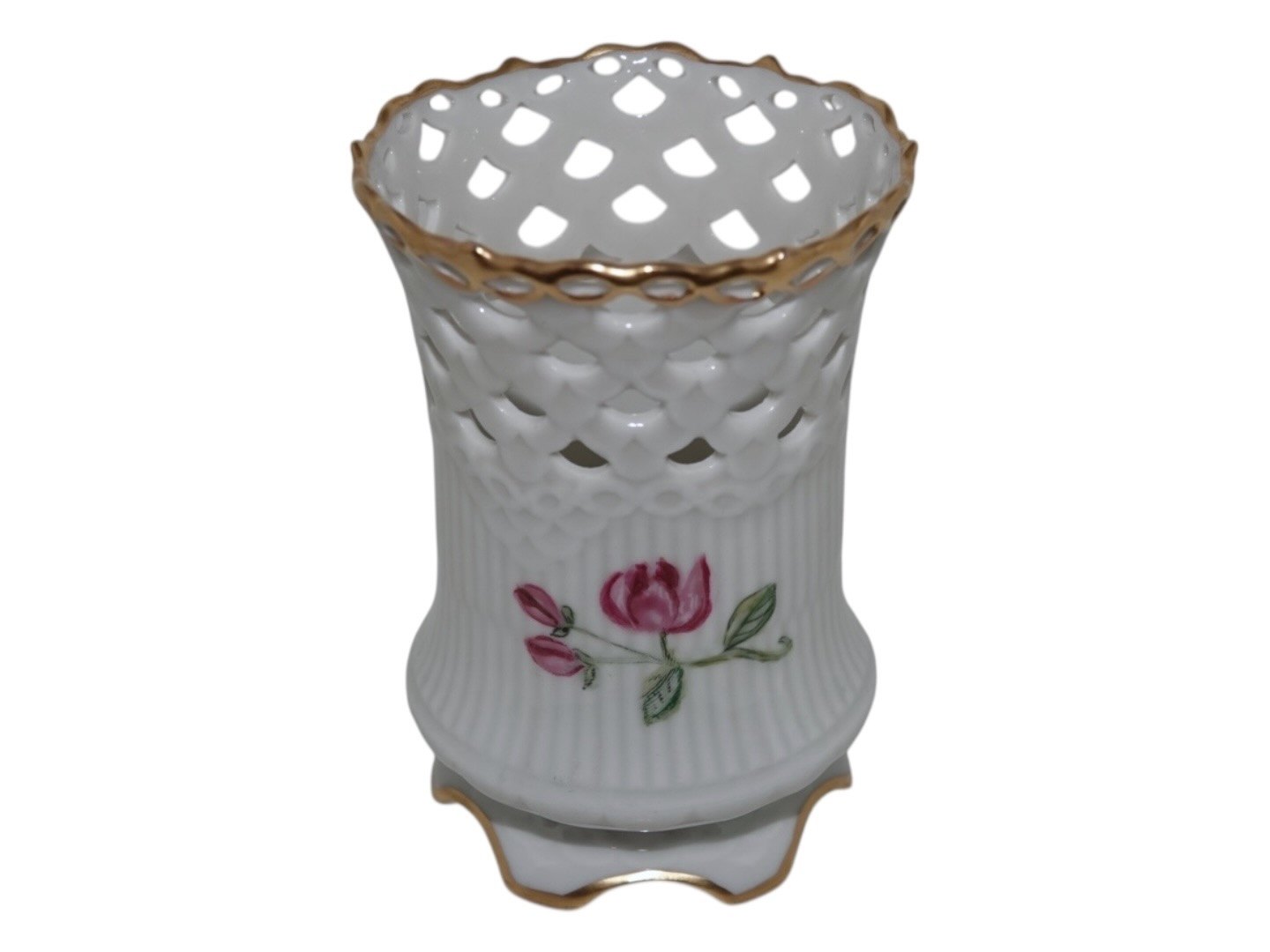 Royal Copenhagen bæger med gennembrudte kanter. Det er formentlig hjemmemalet.