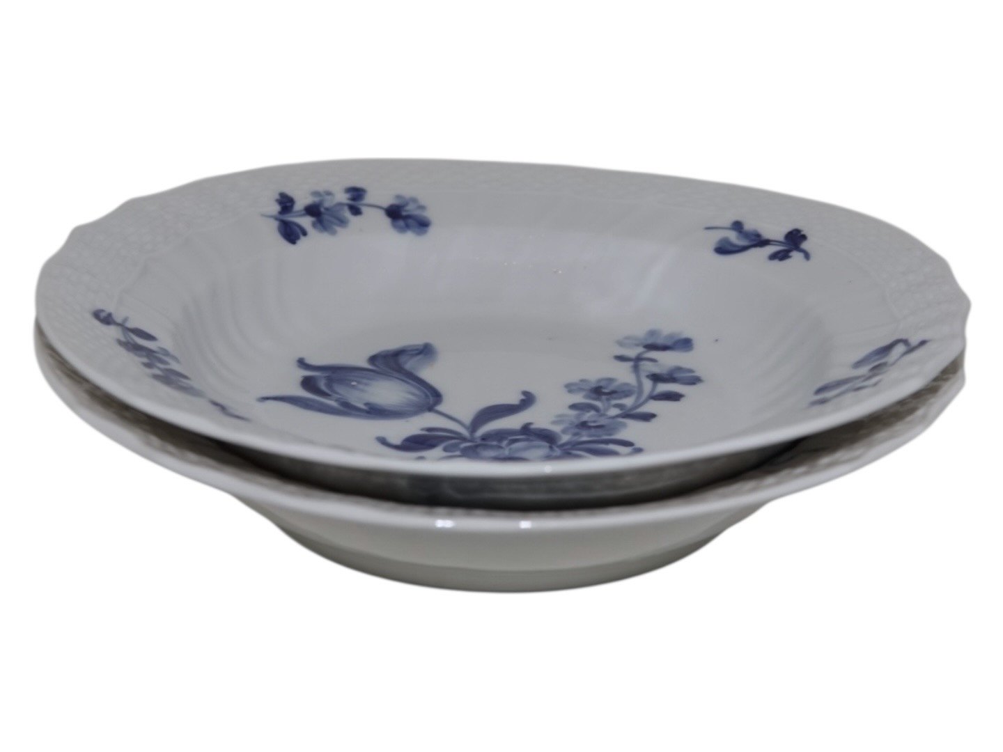 Royal Copenhagen Blå Blomst Svejfet, ekstra lille dyb tallerken. Dekorationsnummer 10/1617. Disse er produceret mellem 1898 og 1923. 1. sortering. Diameter 19,5 cm. Perfekt stand uden fejl.