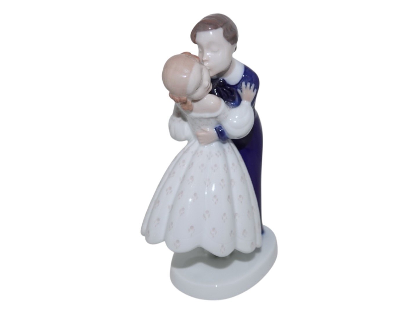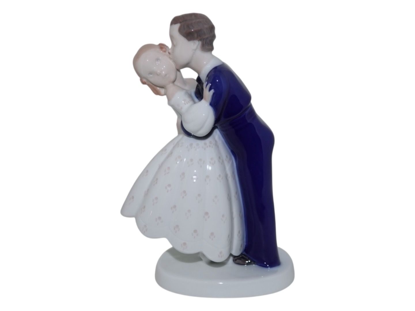 Bing & Grøndahl figur, det første kys. Af fabriksmærket ses det, at denne er produceret mellem 1962 og 1970. Dekorationsnummer 2162. 1. sortering. Højde 19,0 cm. Perfekt stand uden fejl.