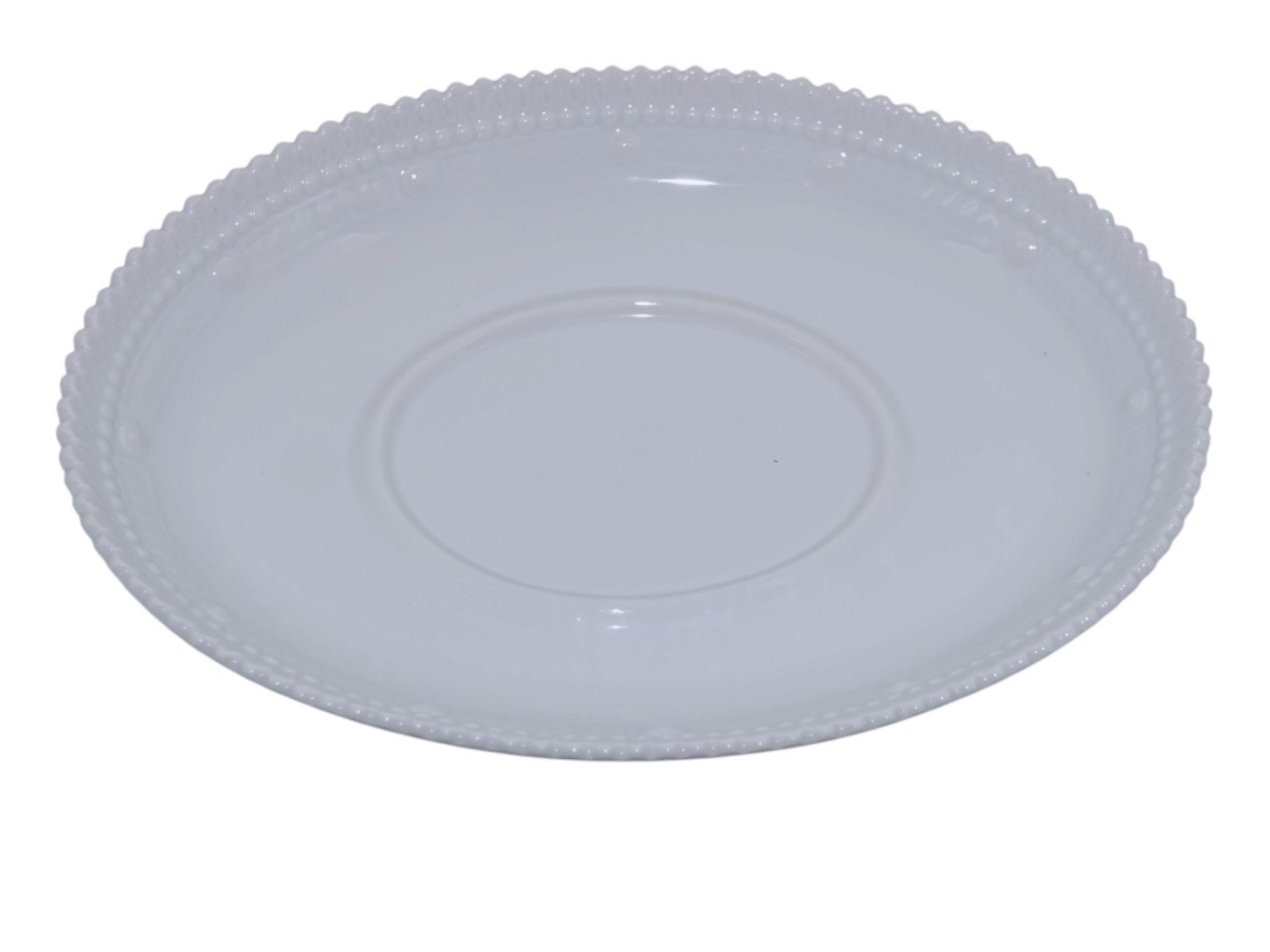Royal Copenhagen Hvid Flora Danica også kaldet Perlestellet, underfad til sovseskål. 1. sortering. Længde 23,0 cm. Perfekt stand uden fejl.