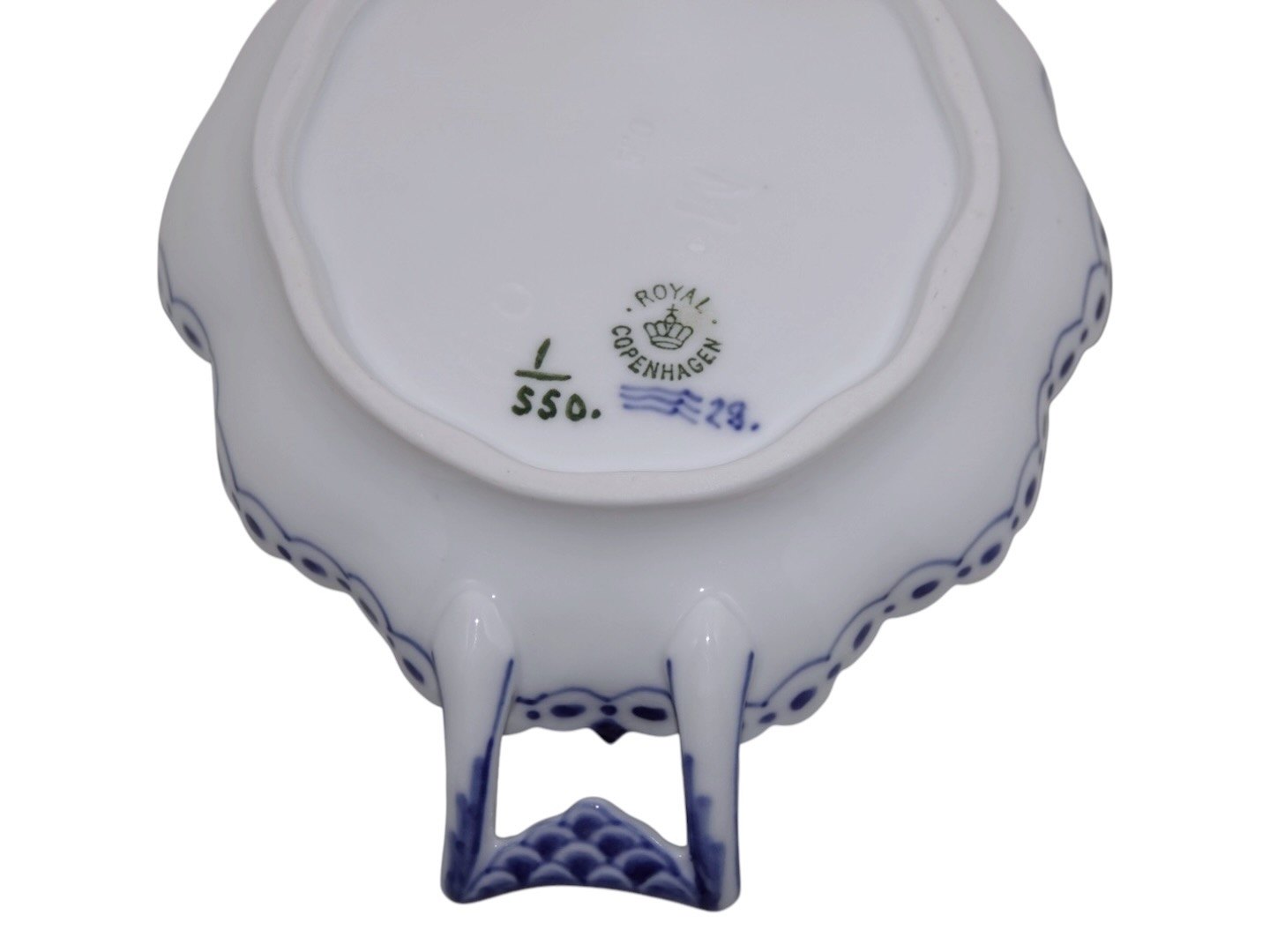 Royal Copenhagen Blue Fluted Half Lace, rare dish with a handle.