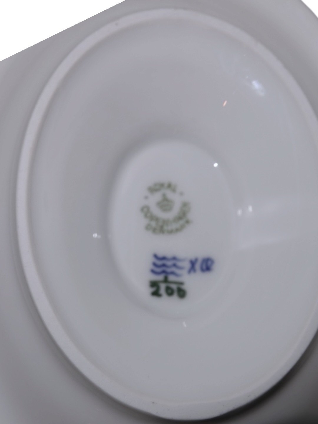 Royal Copenhagen Musselmalet Riflet, sovseskål med fast fod.