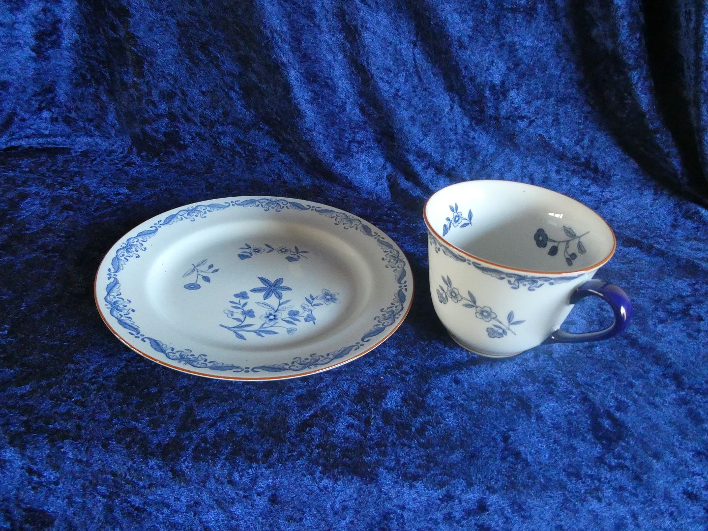 Kaffekrus eller thekrus med hank samt frokost tallerken 21cm, begge dele er i pæn, brugt stand