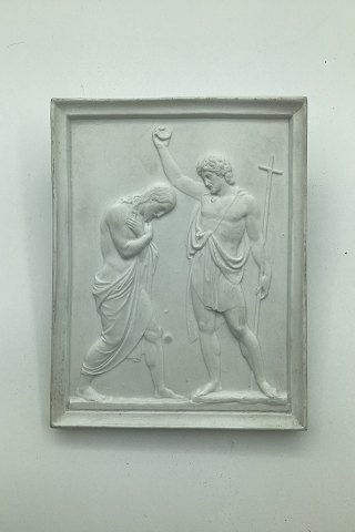 Royal Copenhagen Biscuit Plate. Motif after Thorvaldsens Baptisment of Christ (113). The Plate measures 16 cm x 12 cm and the kopi is done by O.H.B. HOlrik in 1848. This plate dates to the time around 1850 and is in good condition without chips or repairs.