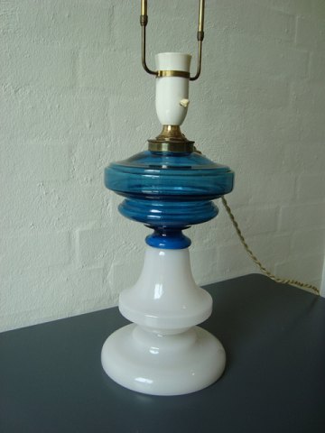 Fod af hvid opaline og petroleumsholder af transperent turkis glas.