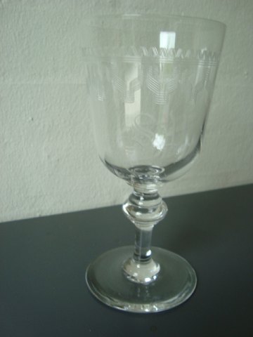 Gammelt pokalglas med ciseleret fane og monogram (SP).