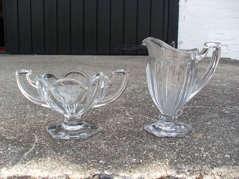 Sukker skål og fløde kande i krystal.