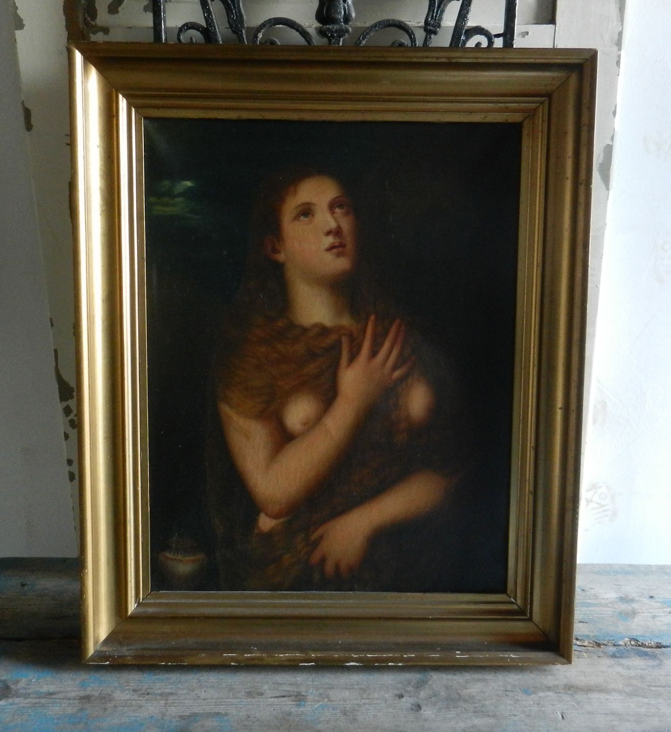 Smukt Italiensk oliemaleri, ung kvinde med blottet bryst