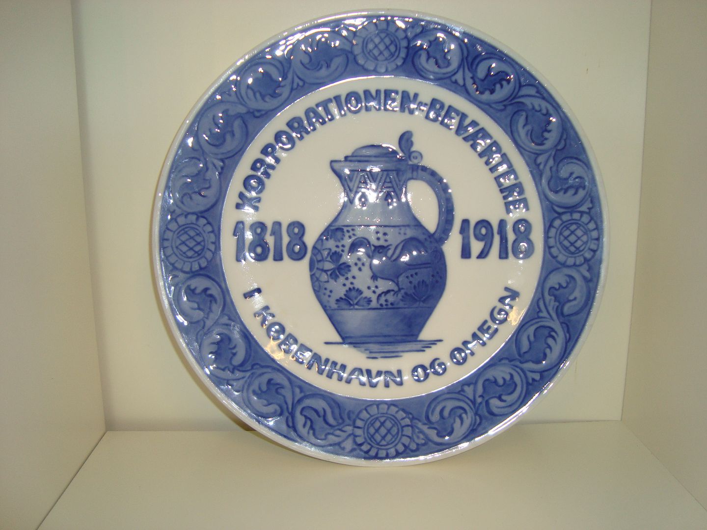 Platte fra Korporationen af beværtere i København og omegn 1818-1918 desgn. Ellinor Selchau. Produceret i 600 stk. D. 25 cm