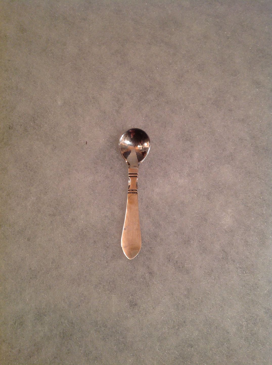 Antik var Georg Jensens første spisebestik tegnet i 1906, med svagt hamrede overflade. L: 6 cm.
