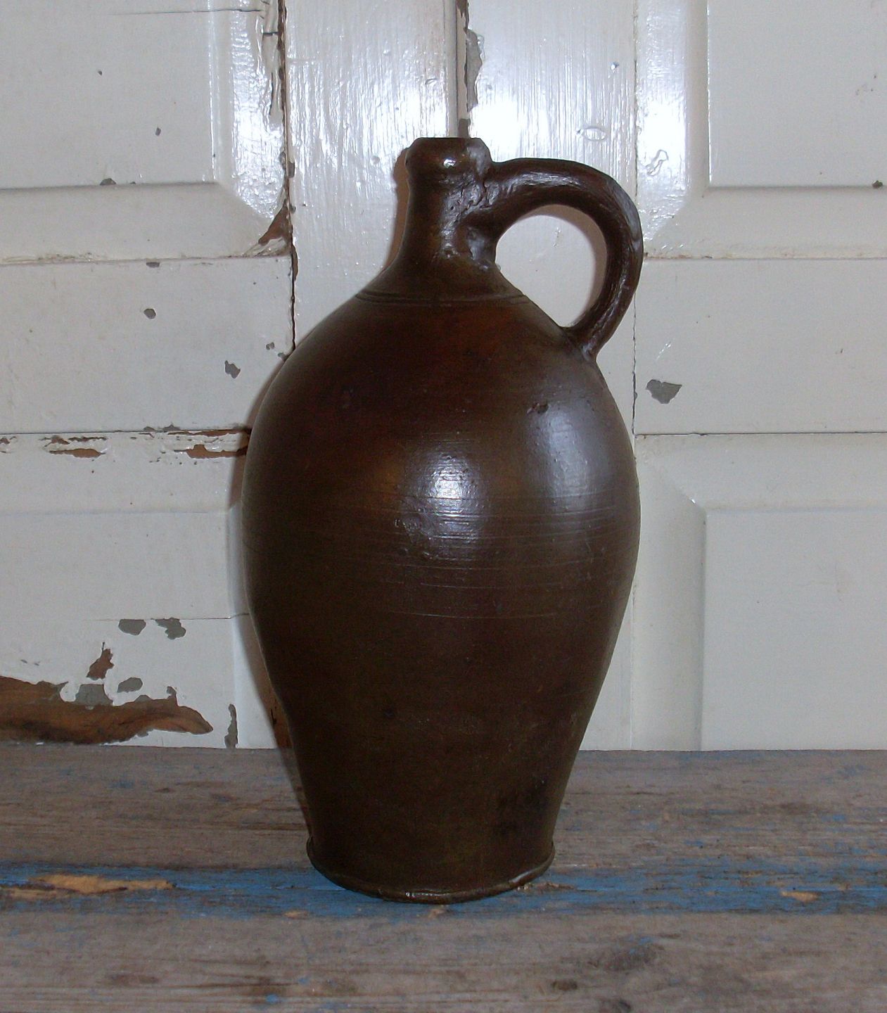 Lille brændevins dunk i brun saltglasur.