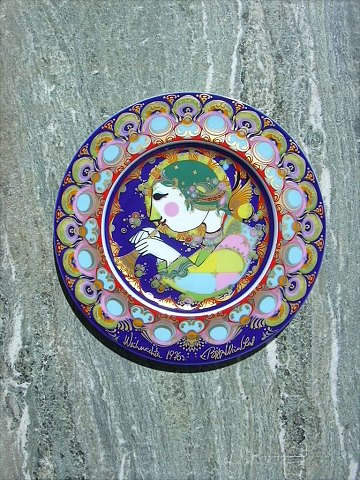 Bjørn Wiinblad juleplatte fra 1976. Diameter 28 cm. 1. sortering. Rosen Thal porcelæn. Flot stand.