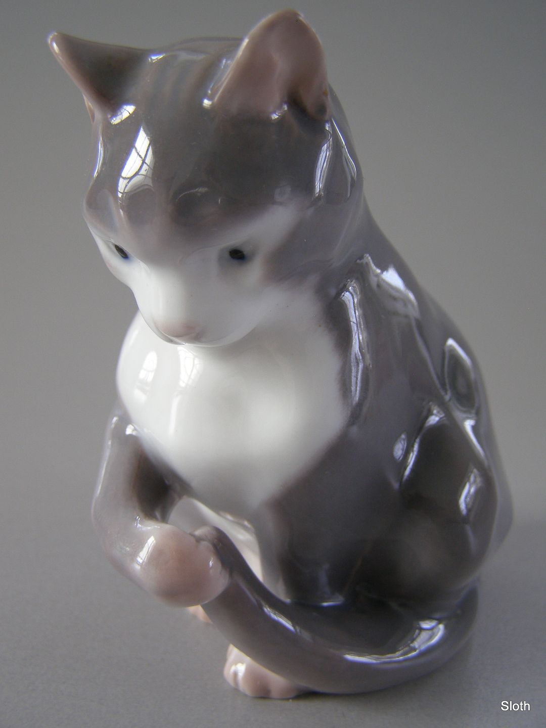 B&G 1553 Siddende Kat, Dahl Jensen 1. sort. H: 10,5 cm.