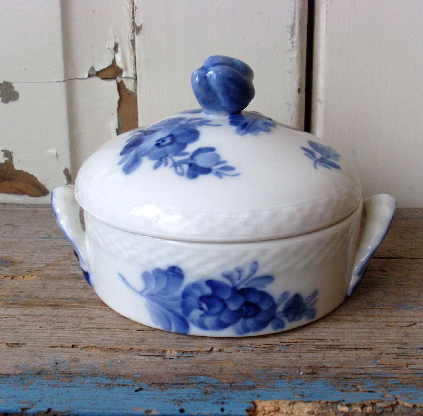 Royal Copenhagen Flettet Blå Blomst smør skål med låg no. 8139