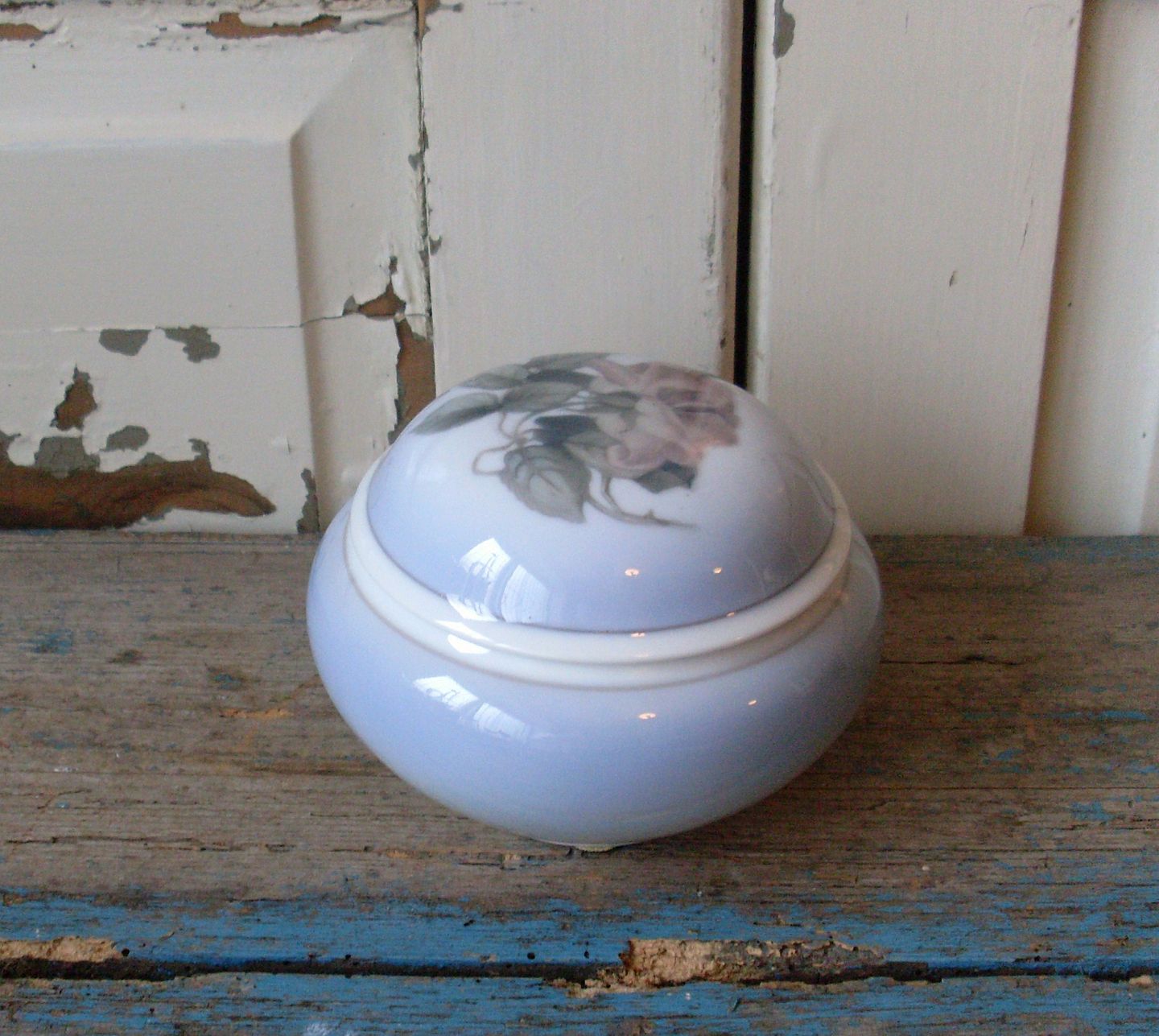 Royal Copenhagen Art Nouveau låg krukke dekoreret med rose.